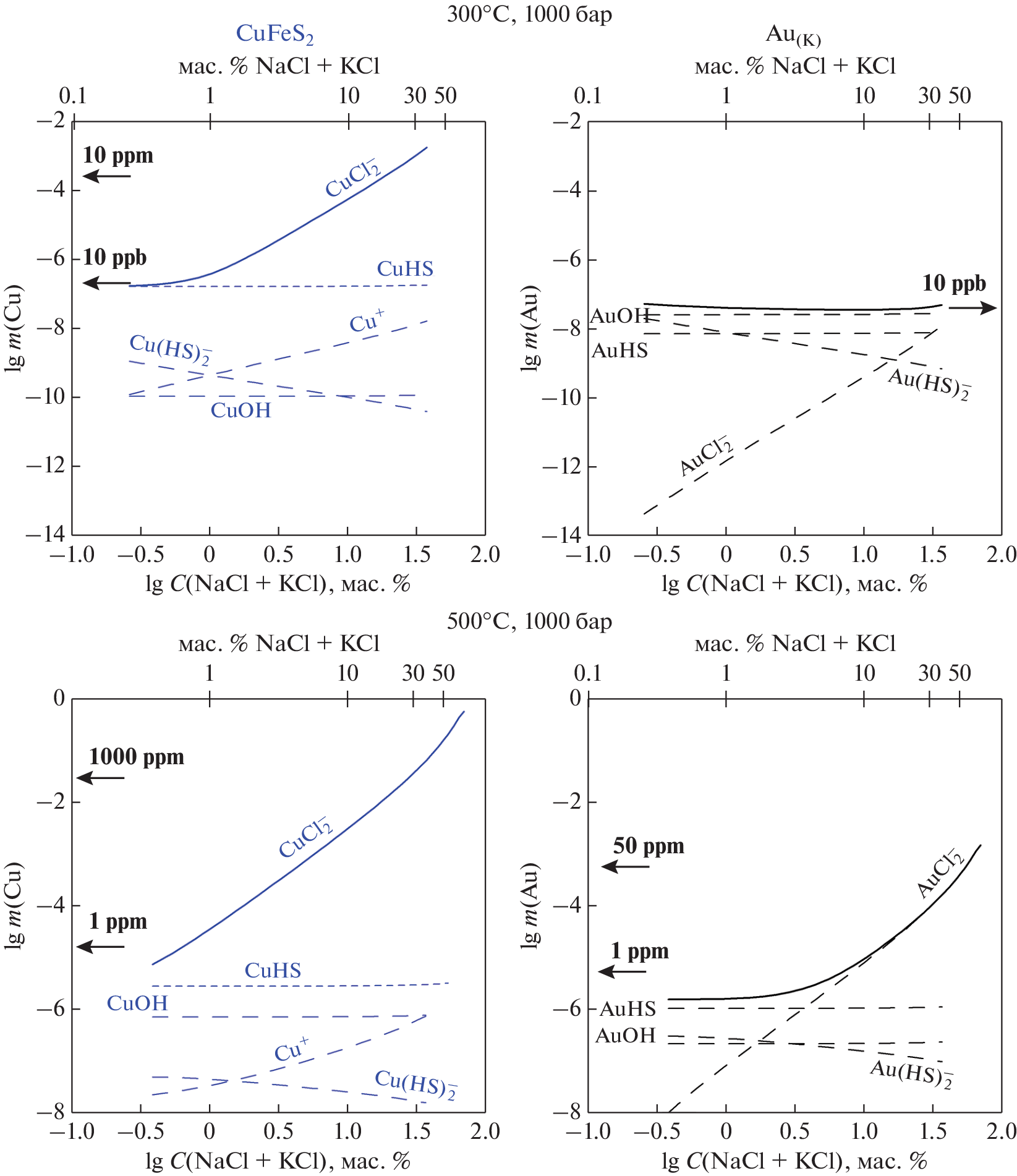- Liu W., McPhail D.C., Brugger J. An experimental study of copper(I)–chloride and copper(I)–acetate complexing in hydrothermal solutions between 50°C and 250°C and vapor saturated pressure // Geochim. Cosmochim. Acta. 2001. V. 65. P. 2937–2948.