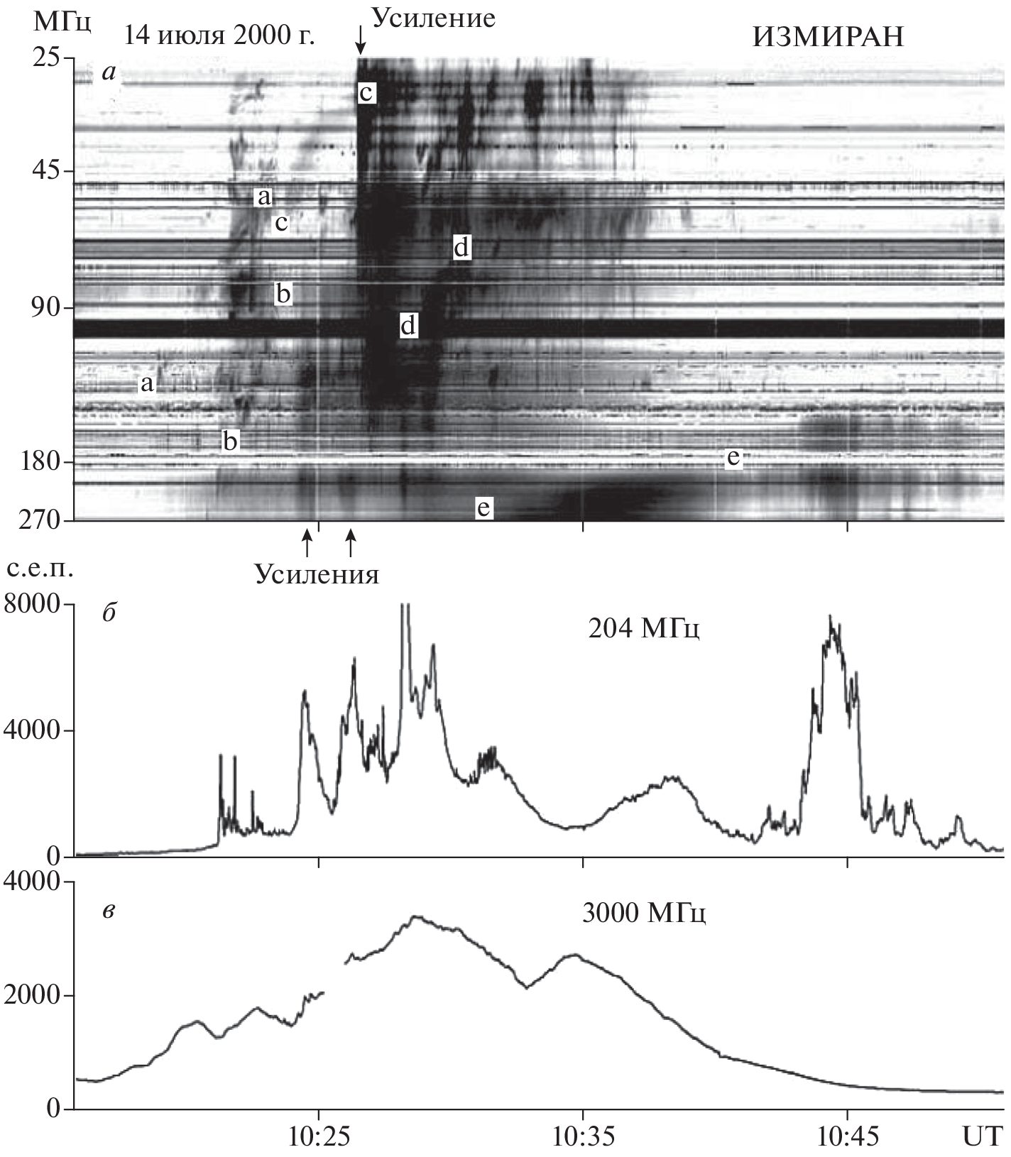 - ‒ Wang S.J., Yan Y.H., Zhao R.Z., Fu Q.J. et al. Broadband radio bursts and the structures during the great solar event on 14 July 2000 // Sol. Phys. V. 204. P. 155‒166. 2001.