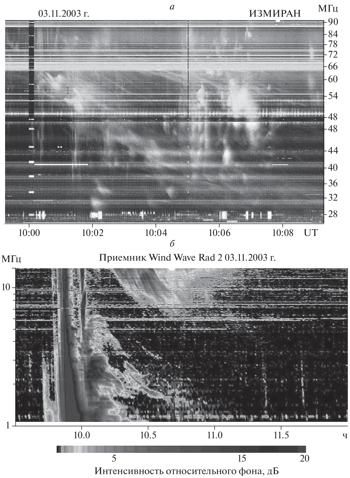- ‒ Chertok I.M., Fomichev V.V., Gnezdilov A.A. et al .Multi-scale temporal features of the 14 July 2000 meterwavelength dynamic radio spectrum compared with TRACE data // Sol. Phys. V. 204. C. 141‒254. 2001.