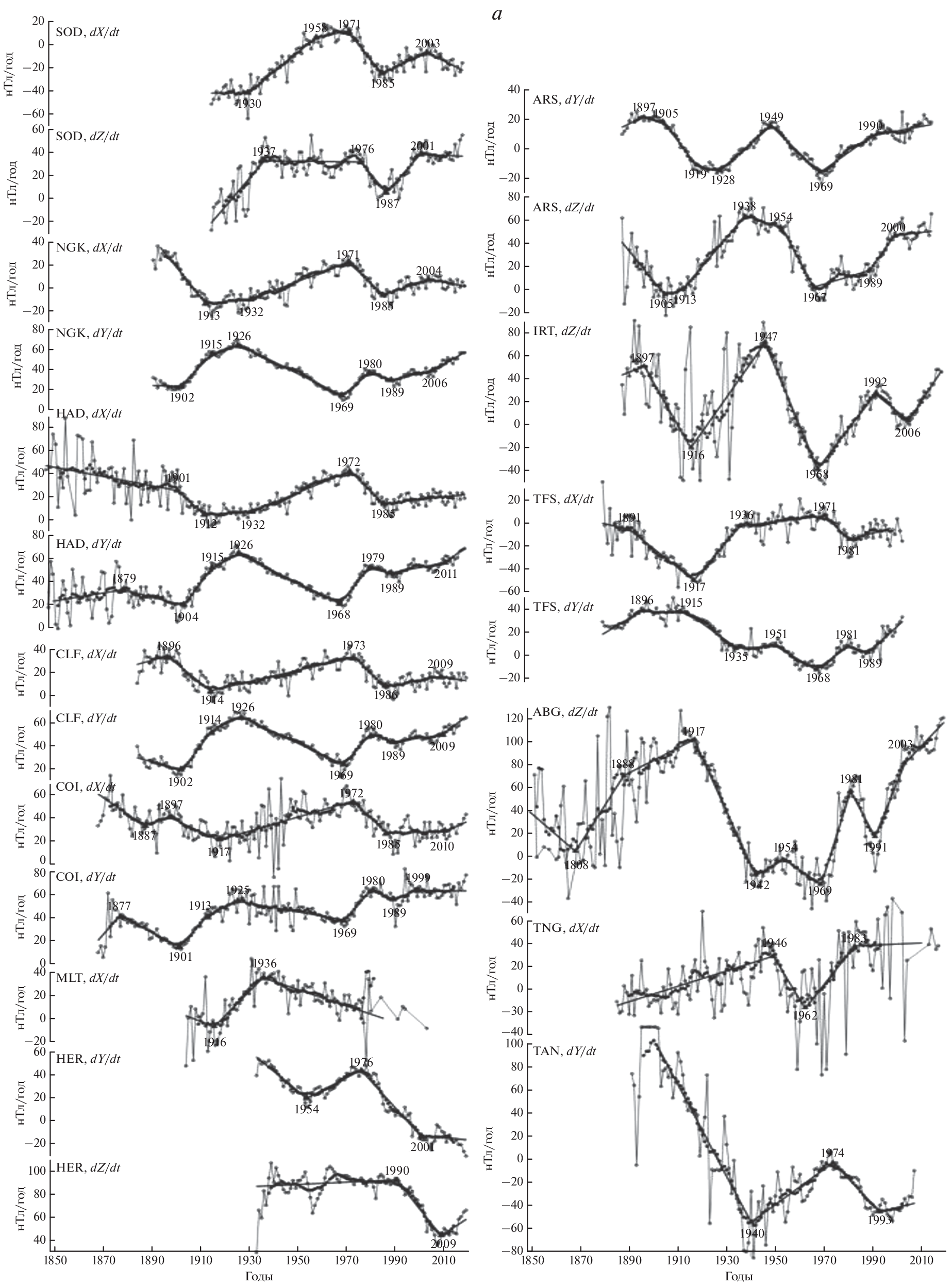 - − Soloviev A., Chulliat A., Bogoutdinov S. Detection of secular acceleration pulses from magnetic observatory data // Phys. Earth Planet. Inter. V. 270. P. 128–142. 2017