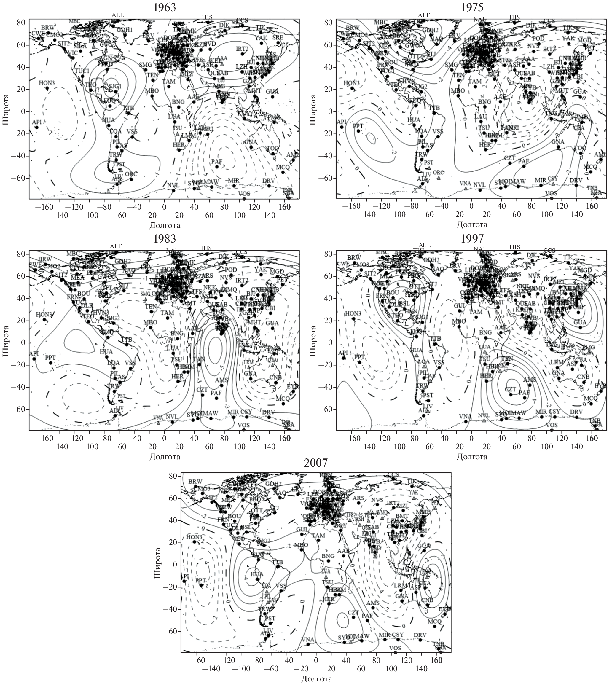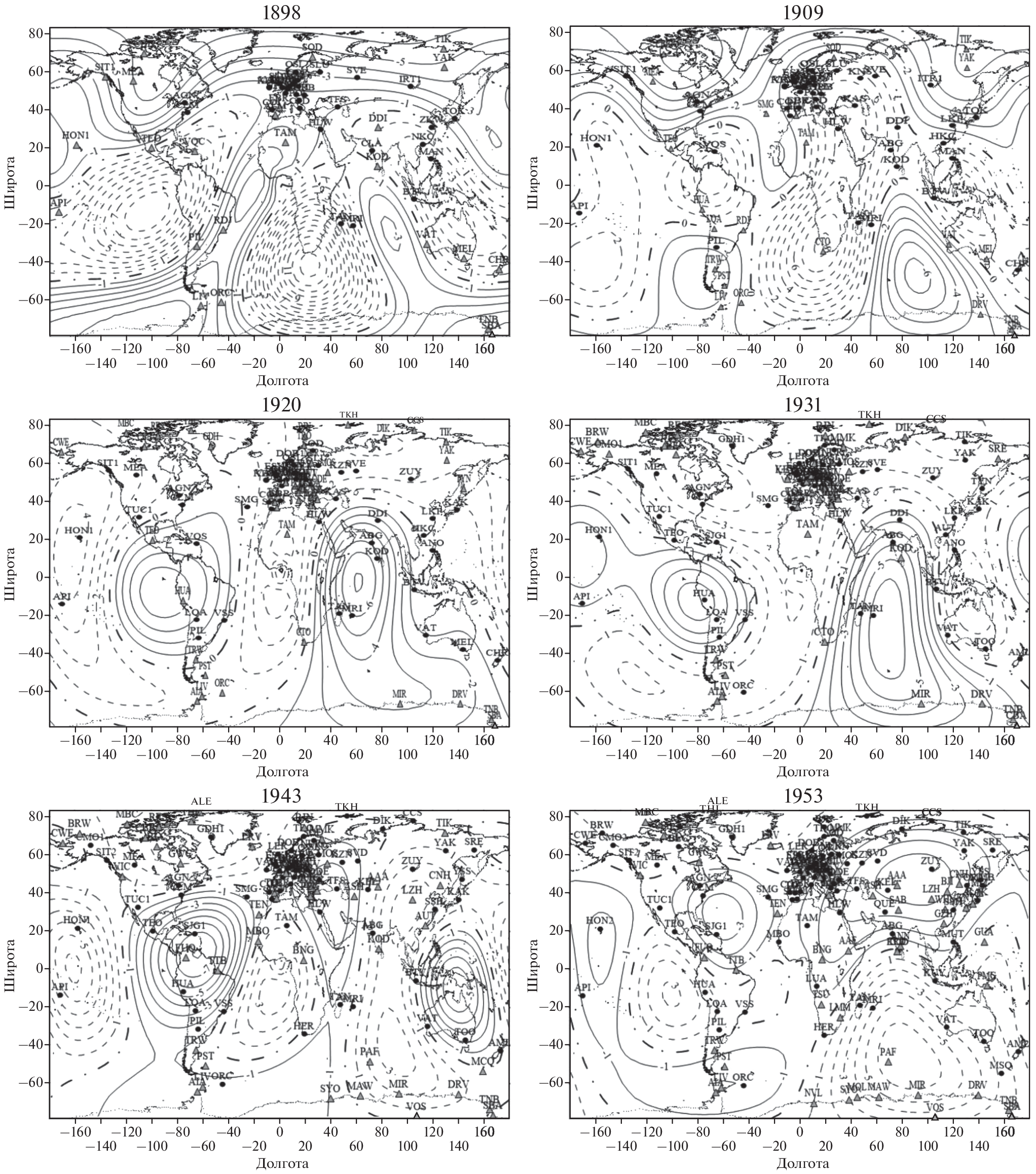 - − Cire C., Le Mouel J.L., Ducruix J. Evolution of the geomagnetic secular variation field from the beginning of the century // Nature. V. 307. P. 349–352. 1984.
