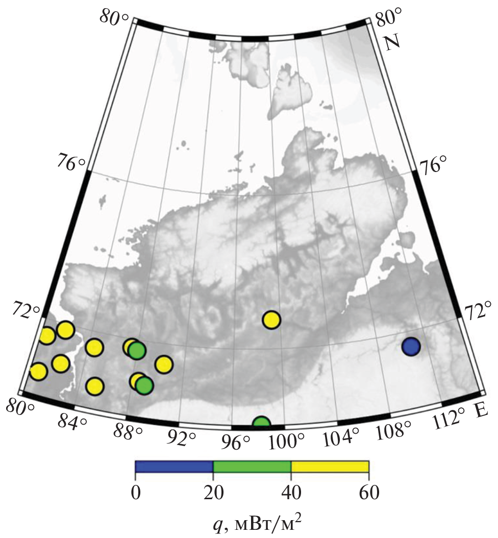 В статье представлены результаты исследования теплового режима литосферы под полуостровом Таймыр и сопредельными территориями (70°–80° N, 80°–115° E) по геомагнитным данным. Спектральный анализ аномального геомагнитного поля, заданного моделью EMAG2v3, выполнен с помощью метода центроида. Проведенные расчеты показали, что минимальные значения глубины верхней границы литосферных магнитных источников (<2.5 км) характерны для всего Таймырского складчатого пояса и рассматриваемой части Сибирской платформы, максимальные (>6 км) – для Северо-Карского бассейна. Положение верхней границы магнитоактивного слоя литосферы выше подошвы осадочного слоя под Енисей-Хатангским и Хатангско-Ленским бассейнами может быть связано с повсеместным внедрением в осадочный слой базальтовых траппов. Минимальные значения глубины нижней границы литосферных магнитных источников (<36 км) приурочены к Евразийскому бассейну и соседними с ним территориями шельфа моря Лаптевых и островов архипелага Северная Земля, что свидетельствует о наибольшем в пределах рассматриваемого региона прогреве литосферы под ними. Максимальных значений (≥48 км) глубина нижней границы достигает под Енисей-Хатангским, Северо-Карским бассейнами и Сибирской платформой, указывая на существование здесь холодной и, соответственно, мощной литосферы, что подтверждается другими независимыми геофизическими данными.