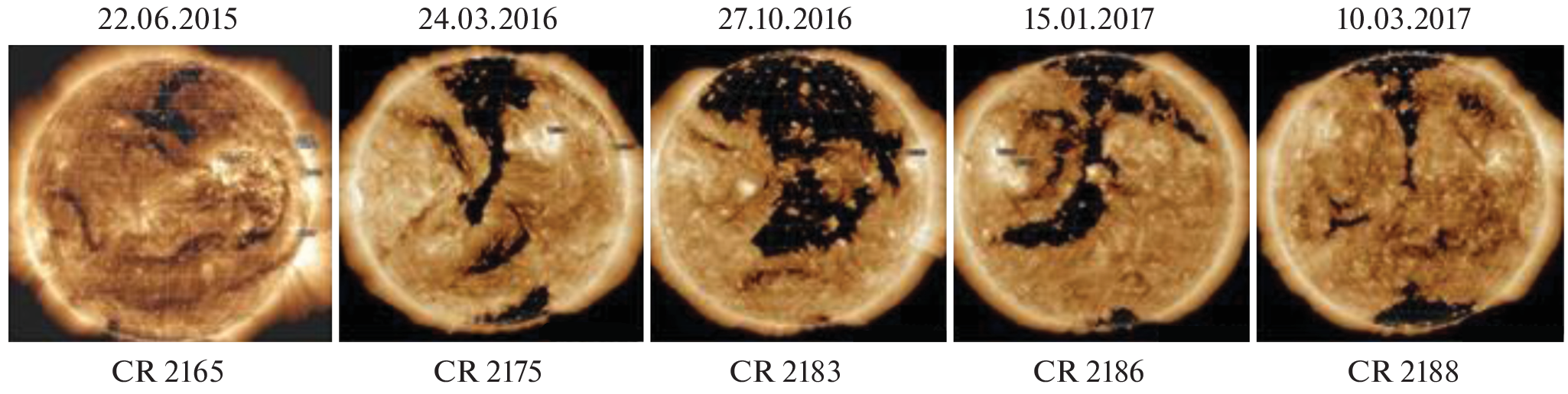2015 to March 2017; this was 24 Carrington revolutions. Four stages of the development of a coronal hole are