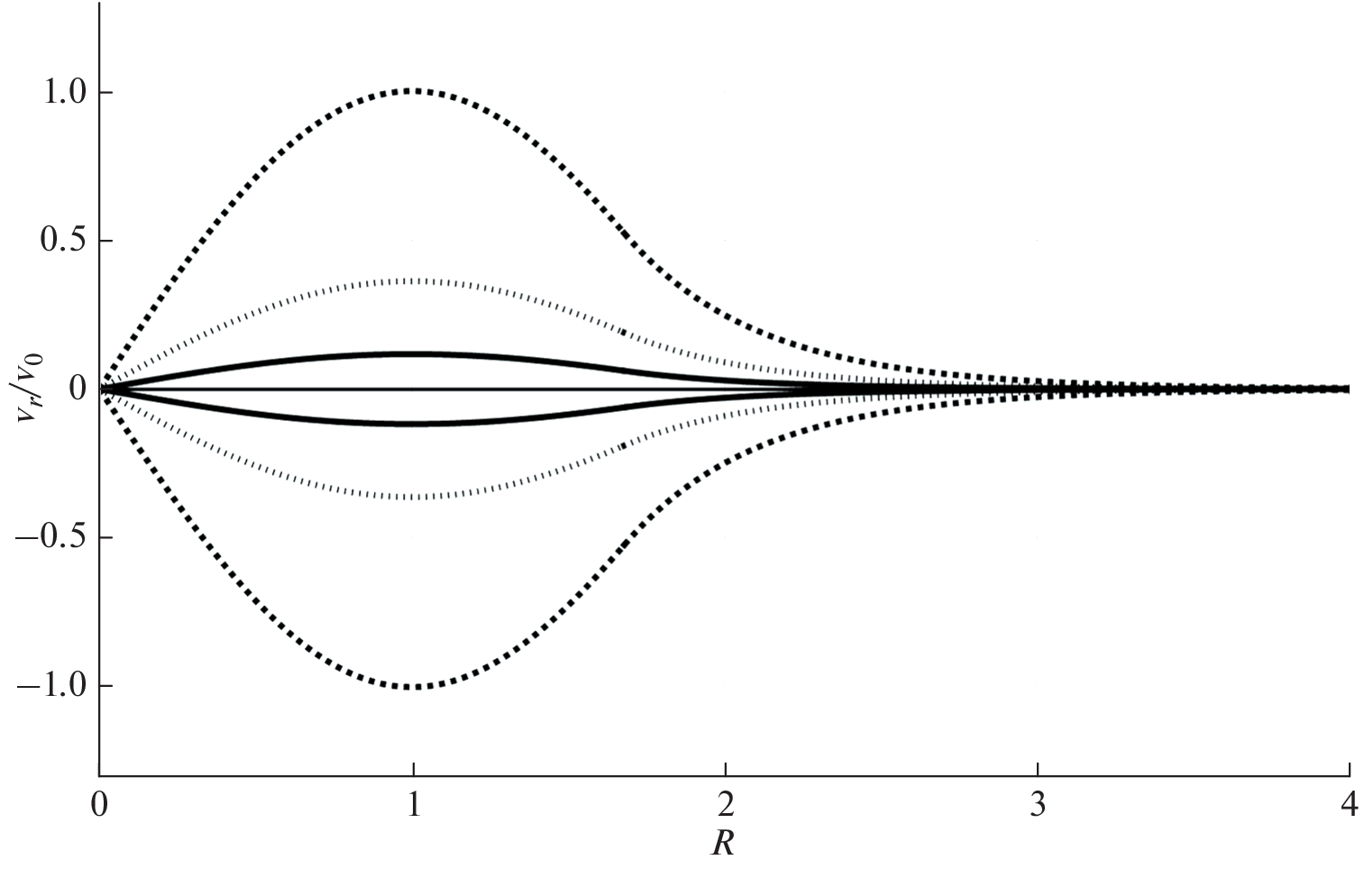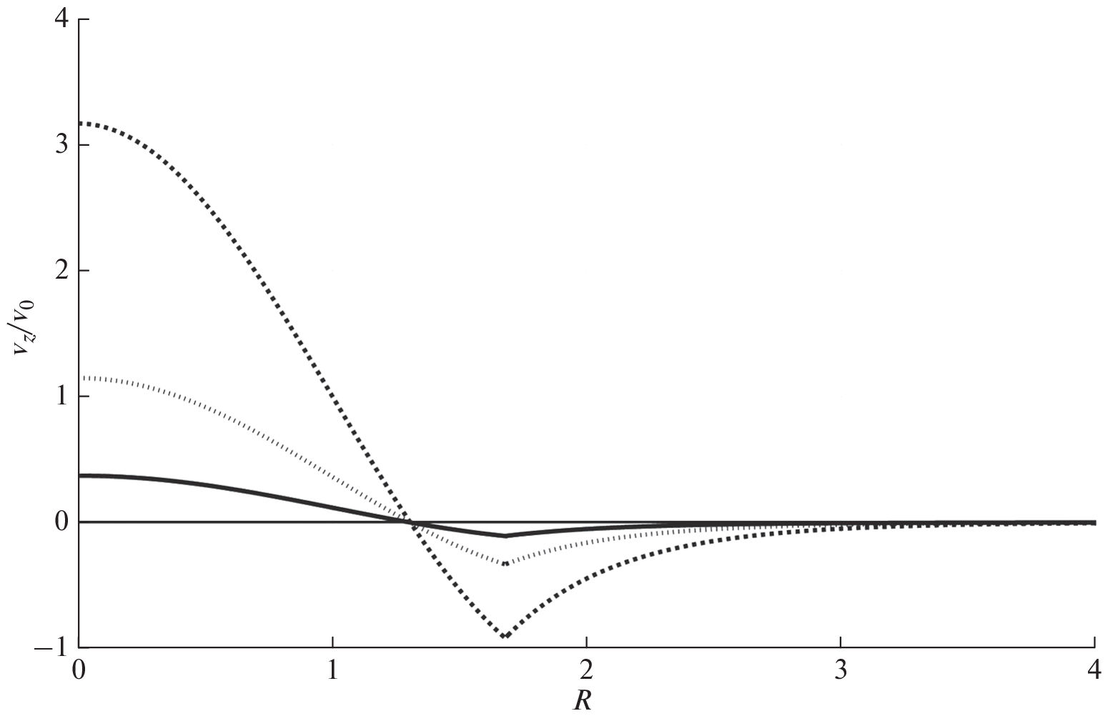 dependences on the radius for the radial and vertical velocity components in the inner and outer regions of