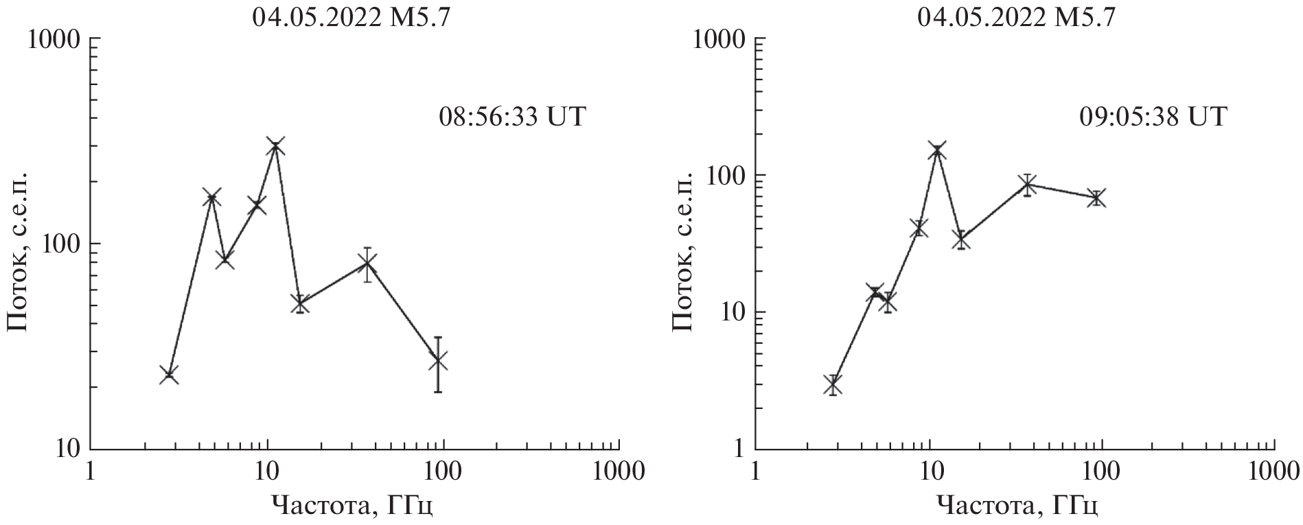 - – Morgachev A.S., Tsap Yu.T., Smirnova V.V., Motorina G.G. Simulation of Subterahertz Emission from the April 2, 2017 Solar Flare Based on the Multiwavelength Observations // Ge&Ae. V. 58. I. 8. P. 1113–1122. 2018.