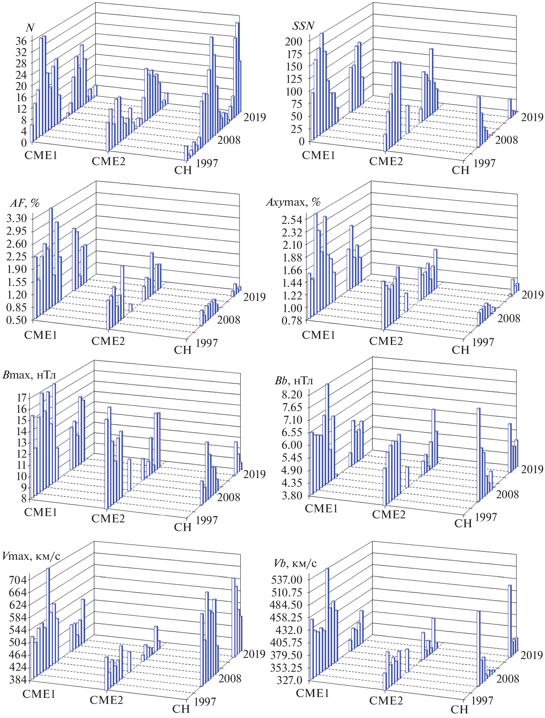 group), and high-velocity streams from coronal holes (CH group). The distributions and relations of various