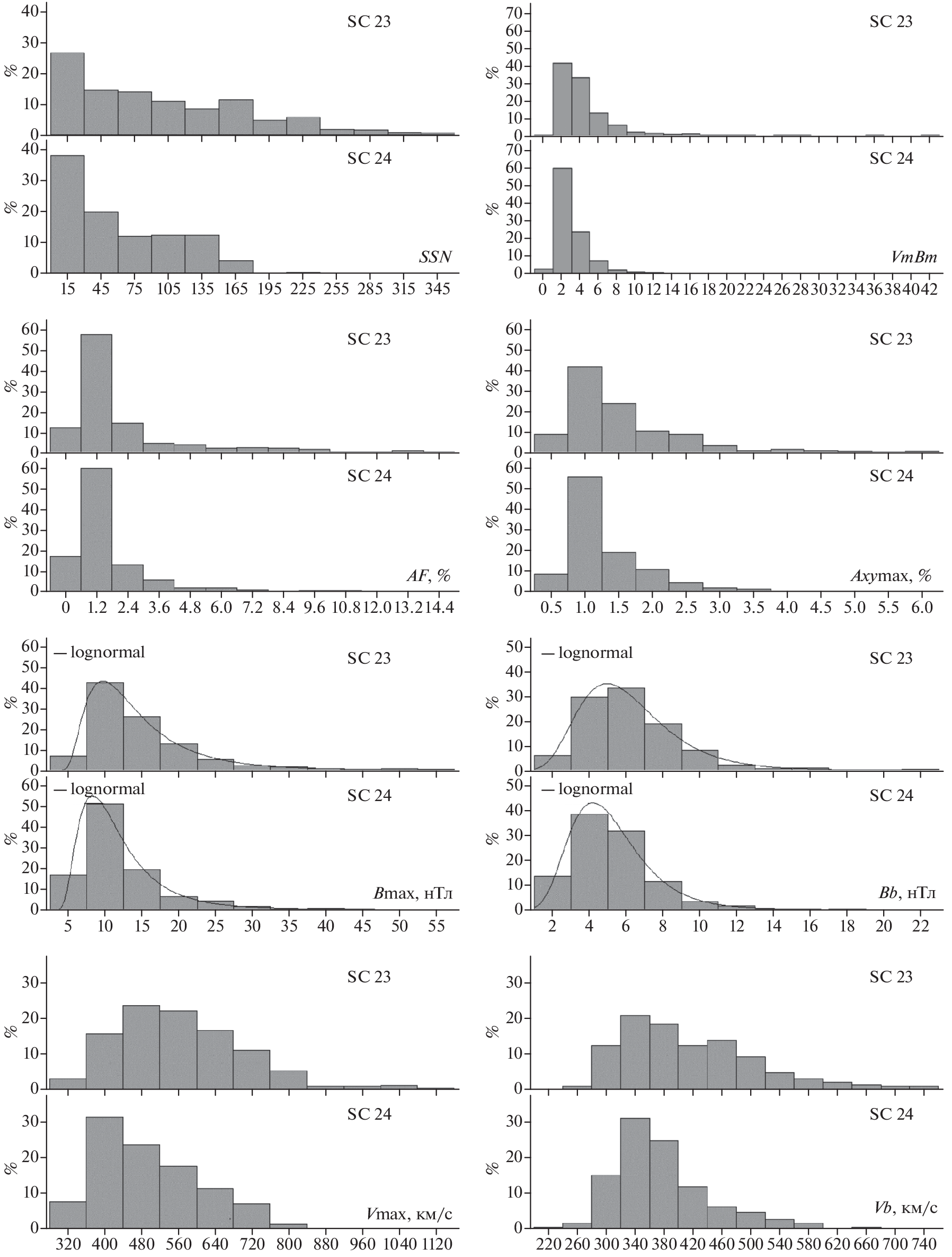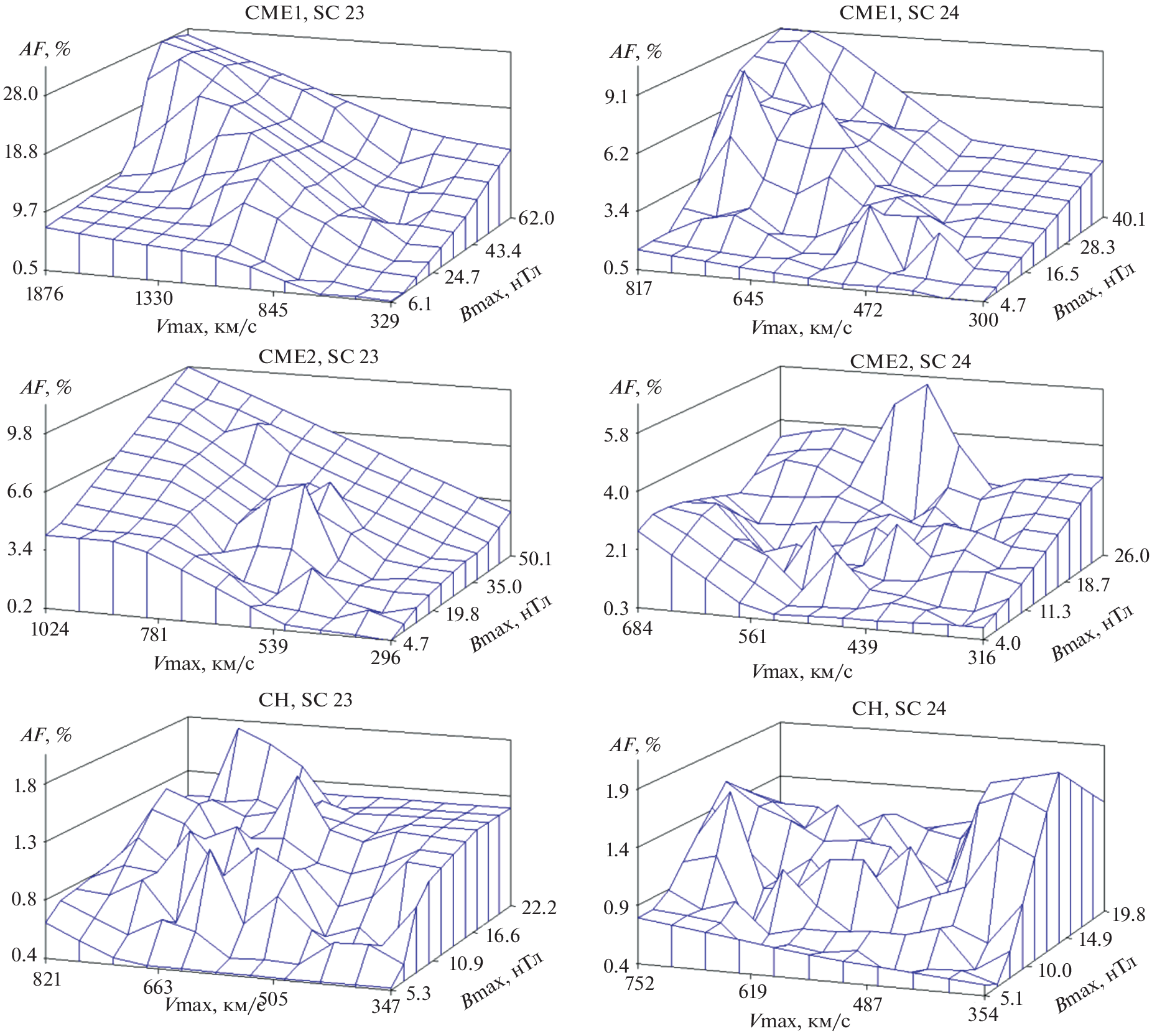 and their relations depend on the phase and cycle of solar activity. In the 24th cycle, the number of events in
