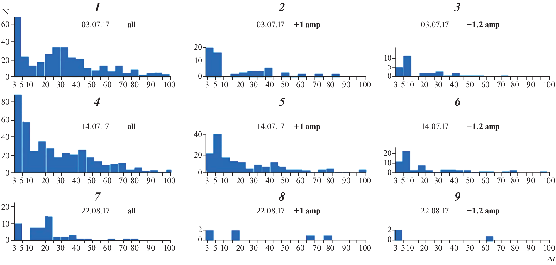 discharges that occurred on the Kamchatka Peninsula in July and August 2017 that were recorded by the