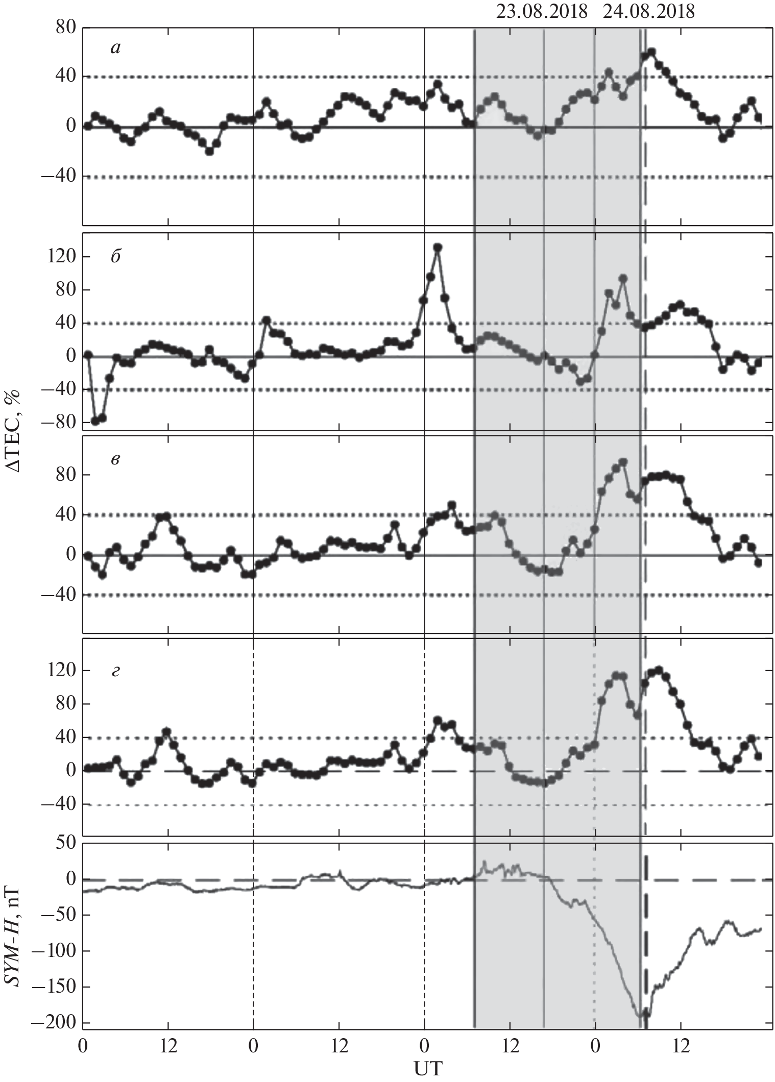 - – Mansilla G.A., Zossi M.M. Ionospheric response to the 26 August 2018 geomagnetic storm along 280° E and 316° E in the South American sector // Adv. Space Res. V. 69. № 1. P. 48–58. 2021. https://doi.org/10.1016/j.asr.2021.08.002