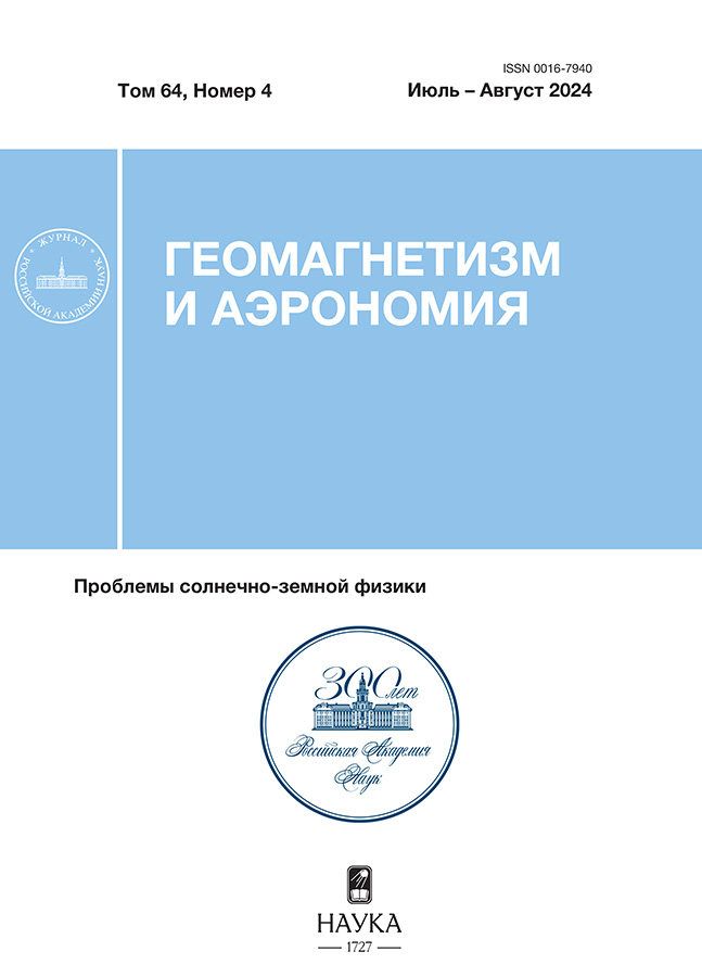 По данным регистрации магнитного поля в Антарктической обсерватории Восток (исправленные геомагнитные координаты F'=−85.41°, L'=69.01°) за период 1970‒1972 гг. исследована вариация несущей частоты fSE серпентинной эмиссии, наблюдаемой в диапазоне частот 0.1‒5.0 Гц в условиях спокойной магнитосферы (Kp ~ 0‒2). Используя динамические спектры УНЧ-излучений, проанализировано 90 случаев наблюдения серпентинной эмиссии, центральная несущая частота которых плавно снижалась (в несколько раз, иногда до 0) и затем возрастала практически до первоначального уровня на интервалах времени, значительно превышающих максимальный период модуляции (1 ч). При этом типичная модуляция несущей частоты эмиссии с периодами 1‒60 мин сохранялась. Наиболее вероятное время наблюдения обнаруженного эффекта приходилось на предполуночные часы. Показано, что снижение fSE и последующее ее возрастание наблюдалось на фоне слабой геомагнитной активности и относительной стабильности доминирующего числа параметров солнечного ветра и ММП. Учитывая обнаруженное синхронное совпадение поведения fSE динамики величины AE-индекса, а также наблюдение эффекта понижения несущей частоты вблизи местной полуночи, предполагается, что вероятнее всего серпентинная эмиссия возбуждается вблизи полярного каспа и затем проникает в область полярной шапки. Наблюдавшееся на длительных интервалах времени поведение fSE предположительно контролируется плазменным параметром β и отношением плотности протонов к плотности ионов гелия Np/Na, динамика которых аналогична средней вариации fSE.