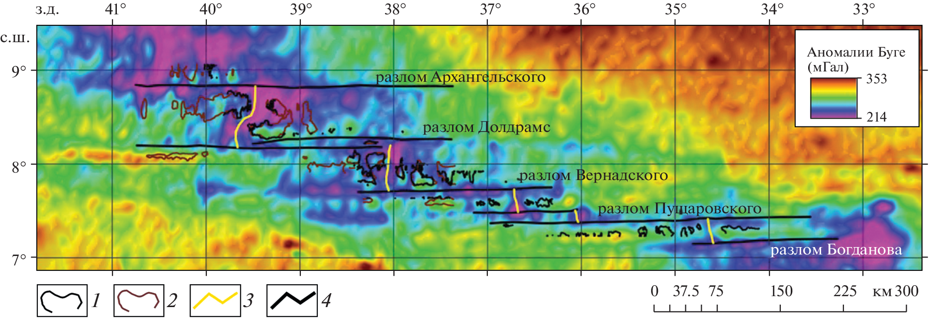 Разломные зоны мегатрансформной системы Долдрамс (Приэкваториальная Атлантика)