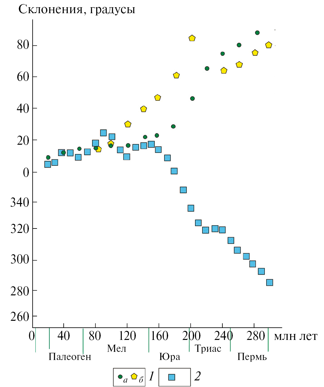 Zhao et al. [93] в 1990 г. были опубликованы первые палеомагнитные определения для Внутренней Монголии, которые показали, что палеошироты формирования позднепермских, юрских и третичных толщ статистически не отличаются от палеоширот Северо-Китайского блока.