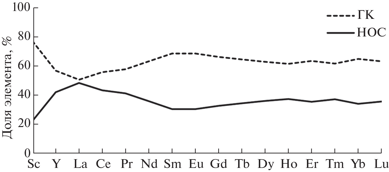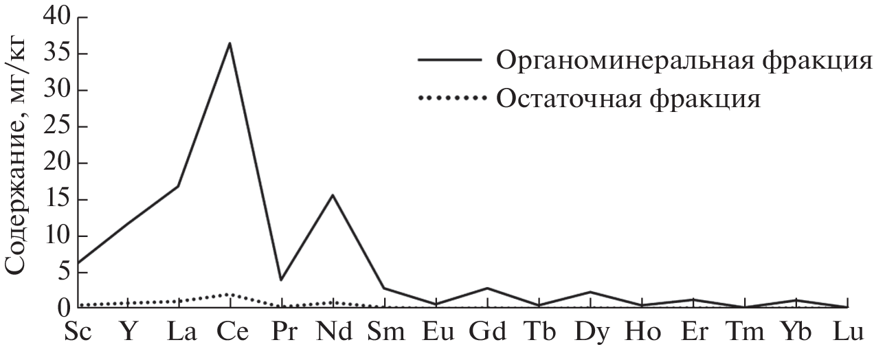 The concentration, speciation, and localization of rare earth elements in Miocene brown coals from the Sergeevskoe deposit (Amur oblast) have been studied. The total rare earth element content of the test coals (97.43 mg/kg) exceeds the clarke value by a factor of 1.5; the amount of light lanthanides (74.57 mg/kg) prevails over that of heavy ones (7.68 mg/kg). The main concentrators of lanthanides in Miocene brown coals are humic acids. The amount of rare earth elements in water-soluble, ion-exchange, silicate, and disulfide forms does not exceed 5% of the total content with the exception of scandium, 22% of which is associated with silicate minerals such as clays.