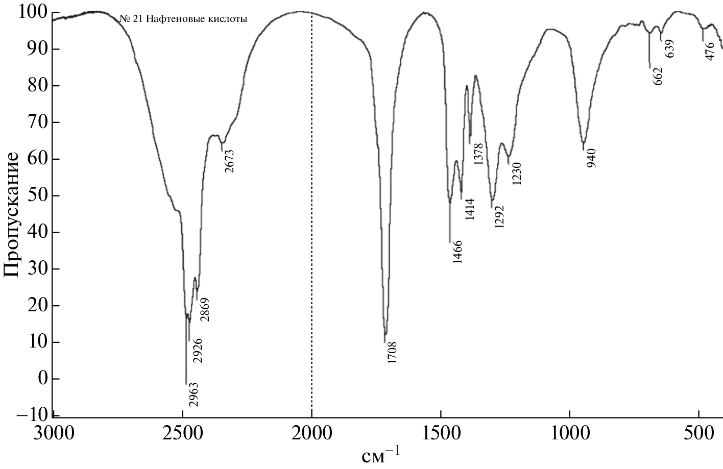 The formation of oil sediment in highly paraffinic oil in the presence of carboxylic and naphthenic acids was studied. The influence of the concentration and composition of acids on the process of sediment inhibition and the concentrations of paraffins, resins, and asphaltenes in sediments was demonstrated. In the composition of sediments obtained from oil with the addition of acidic reagents, the amount of light n-alkanes increased and the fraction of higher molecular weight hydrocarbons decreased. The concentrations of aliphatic fragments and carboxyl groups in the resins of sediments obtained with the addition of acidic reagents decreased, and the aromaticity coefficient increased. Asphaltenes in the sediment were characterized by a decrease in the concentrations of aromatic structures and carboxyl groups.