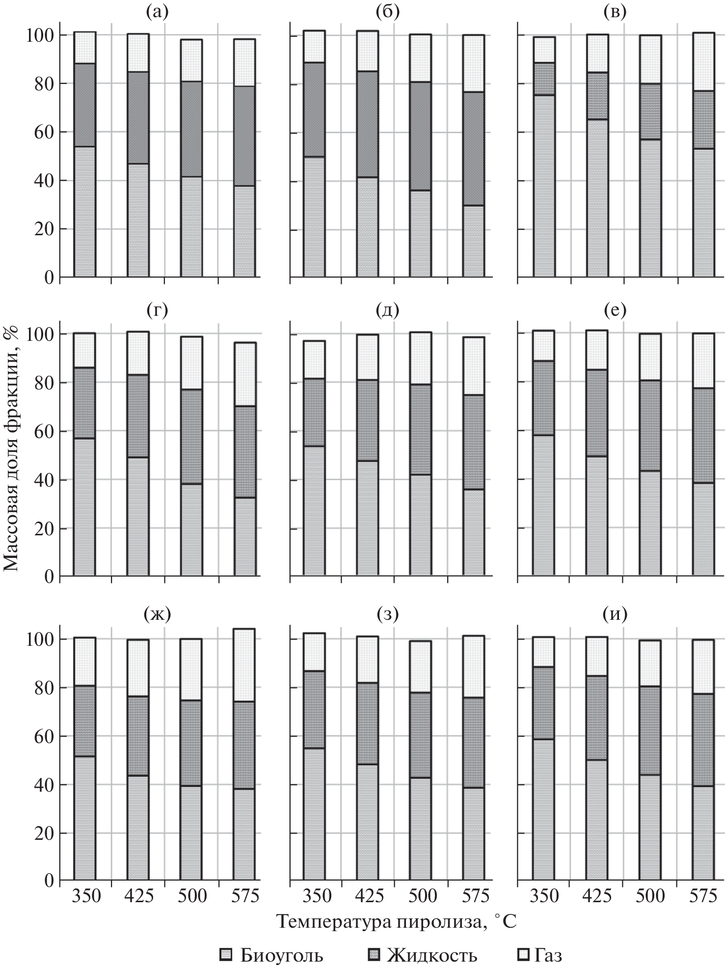 from components in accordance with their fractions in the raw materials was studied. Pyrolysis of the materials was carried out using TGA and a laboratory setup with a fixed bed reactor. The distribution and composition of the products were determined at pyrolysis temperatures of 350, 425, 500, and 575C. Experimental data obtained with the biomass samples and model mixtures were compared with calculated values obtained based on the pyrolysis of individual components and their fractions in the biomass. The possibility of predicting the distribution of pyrolysis products depending on the component composition was investigated. The
