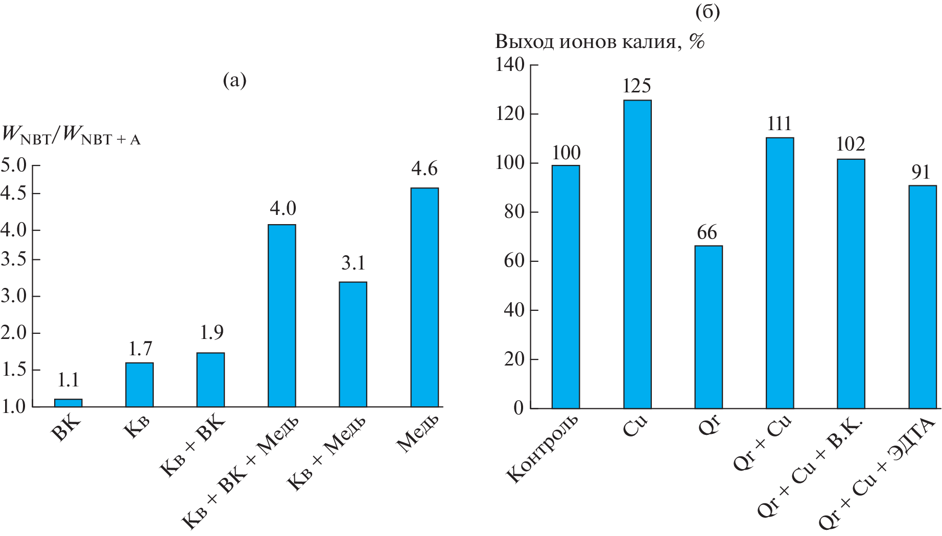 Steady state radiolysis showed a decrease in the reactivity of quercetin in free radical reactions with the 1-hydroxyethyl radical and the superoxide radical anion as a result of the formation of a complex with a copper ion. The negative effect of copper ions can be reduced via destroying the resulting complex by introducing chelating compounds, such as tartaric acid and EDTA. The nature of the change in reactivity corresponded to the change in the radioprotective activity of quercetin in relation to yeast cells.