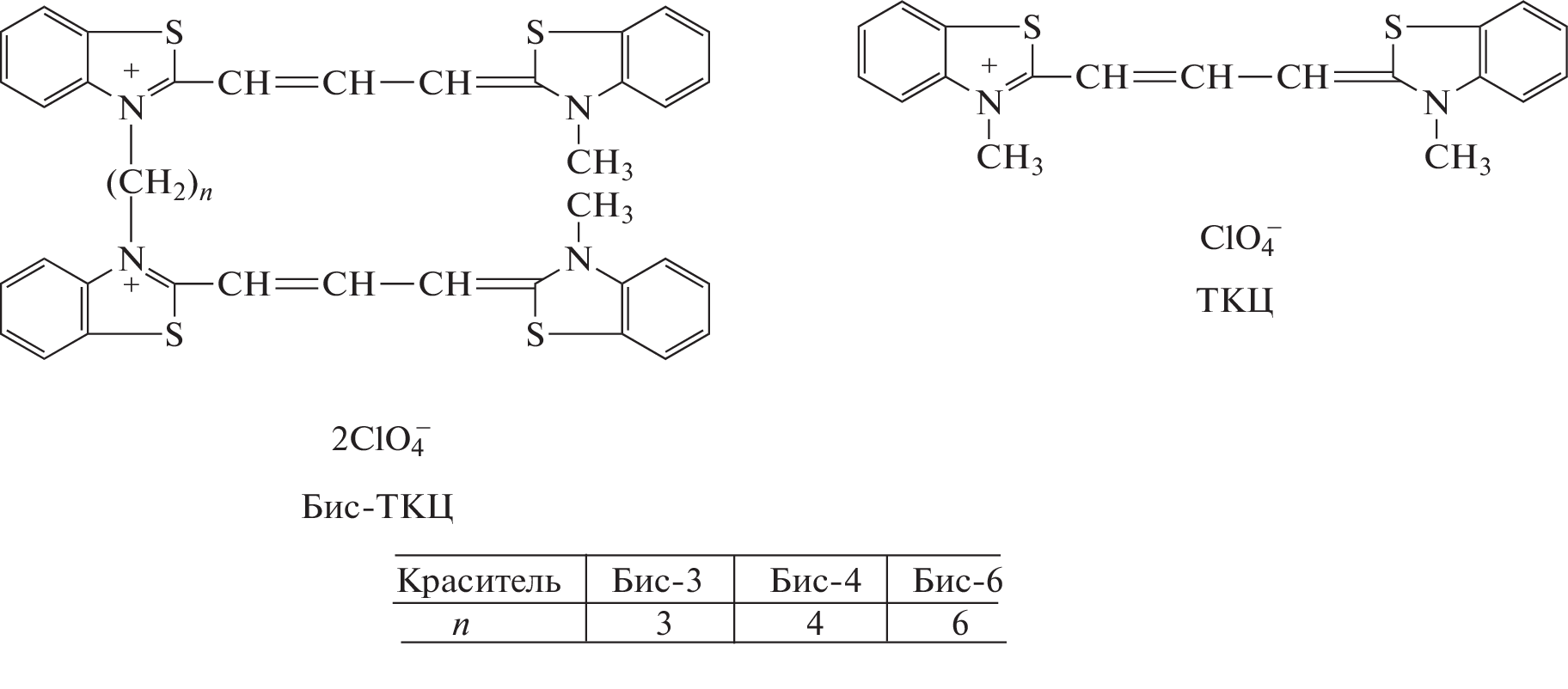 Spectral, spectral–kinetic, and photochemical properties of bisthiacarbocyanine (bis-TCC) dyes, based on 3,3′-dimethylthiacarbocyanine perchlorate, in water have been studied. The existence of two bis-TCC forms absorbing in the long-wavelength (monomeric form) and short-wavelength (dimeric form) spectral regions has been revealed. The monomeric form of bis-TCC is capable of fluorescence, photoisomerization, and transition to the triplet state. The dimeric form is characterized by effective intersystem crossing, the almost complete absence of fluorescence, and photoisomerization. Both the monomeric and dimeric forms of bis-TCC undergo complexation with cucurbit[7,8]urils. Complex formation leads to an increase in the fluorescence intensity of the monomeric and dimeric forms and increases the yield of delayed fluorescence and the lifetime of the dimeric form in the triplet state and those of the photoisomer of the monomeric form. The dimeric form of bis-TCC in the triplet state is capable of entering into the photooxidation reaction with p-itroacetophenone both in the absence and in the presence of cucurbit[7,8]urils