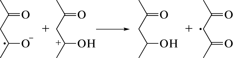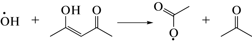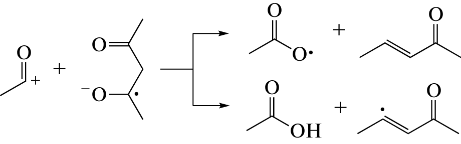Внутримолекулярная водородная связь оказывает существенное влияние на радиолитические превращения β-дикетонов. На примере радиолиза ацетилацетона показано, что водородная связь между гидроксилом и карбонилом в еноле препятствует переносу протона от первичного катион-радикала к соседней молекуле. Вследствие этого радиолитическое образование кетоспирта (4-гидрокси-2-пентанона) не наблюдается при комнатной температуре, но эффективно в условиях кипения. Внутримолекулярная водородная связь способствует существенному структурному напряжению в катион-радикале, что при нормальных условиях увеличивает выход разрыва С−ОН связи и негомогенное образование ацетата (4-оксопент-2ен-2-ил ацетата).