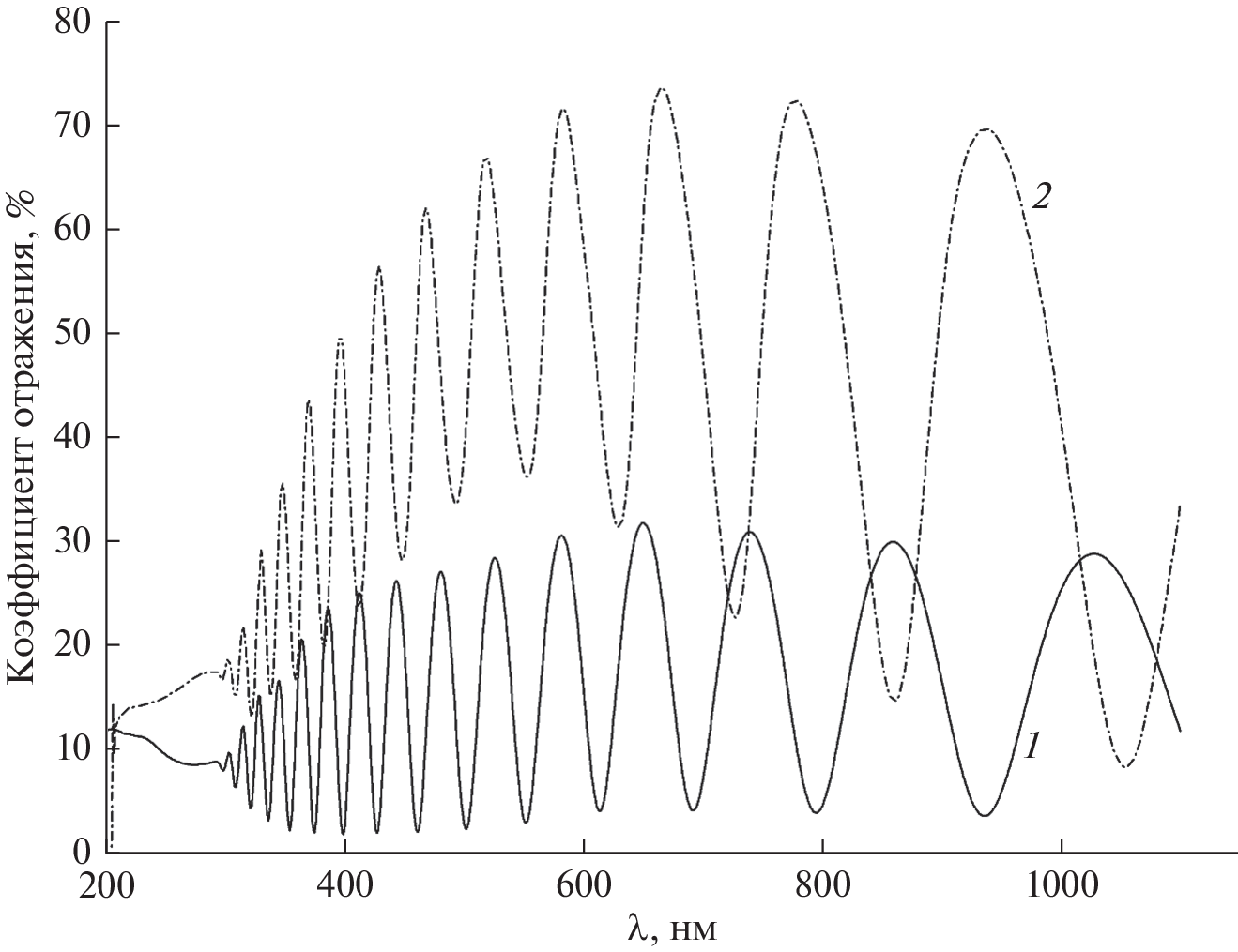 FP9120 diazoquinone–novolac positive photoresist films 1.5 μm thick implanted with Ag+ ions and supported on the surface of KDB-10 (111) silicon wafers by centrifugation have been studied by measuring reflection spectra. It has been shown that ion implantation leads to a decrease in the refractive index of the photoresist due to radiation crosslinking of novolac resin molecules and a decrease in the density ρ and the molecular refraction RM of the photoresist. It has been established that the reflection coefficient in the opaque region of the photoresistive film increases with the Ag+ implantation dose. The changes observed in the optical properties of the films under ion implantation conditions are explained taking into account radiation-chemical processes in the phenol–formaldehyde photoresist.