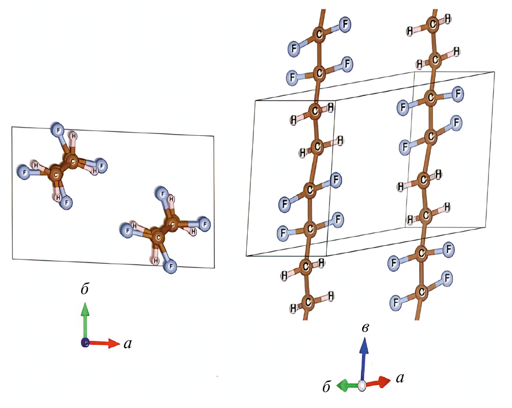 Рис. 2. Расположение атомов этилена-тетрафторэтилена в элементарной ячейке с триклинной фазой (пр. гр. P-1).