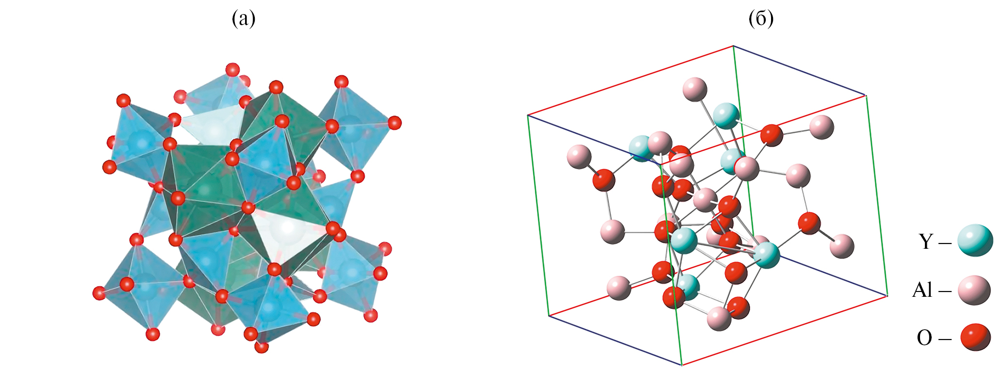 В работе авторов [12] и на рис. 1а приводится строение молекулы Y3Al5O12. Она включает в себя группы AlO45-, AlO69-, в которых O находится в тетраэдрических и октаэдрических позициях (d4 и d6 соответственно). Y представлен в виде YO813-, в которых O находится в додекаэдрических позициях (d8). Аналогичная структура представлена в базе данных [11], в которой приведены основные длины связей и углы между атомами, а также другие параметры кристаллической решетки алюмоиттриевого граната.