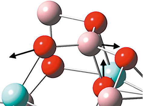 В ИК-спектре алюмоиттриевого граната, измеренного в работе [3], наблюдаются характерные полосы поглощения при значениях волновых чисел: 430, 455, 475, 513, 567, 690, 729, 789 см-1. Однако в рассчитанном ИК-спектре на рис. 2 отсутствуют какие либо колебания при значениях волновых чисел выше 600 см-1 и присутствуют при значениях 415, 433, 447, 476, 569, 583 см-1. Причем наиболее интенсивные при 447 см-1 относятся к ä(AlO3), 475 см-1 к ä(AlO6), 569–583 см-1 к ύ(YAlO). Геометрия построенной модели Y6Al15O15 частично совпадает с моделью из работ [11, 12], а колебания свыше 600 см-1, вероятнее всего, относятся к колебаниям в группах AlO45- и YO813- и к связанными с ними атомами.