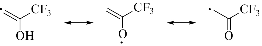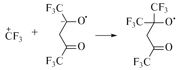 Реакция (2), скорее всего, является главным источником СО в жидком ГФАА. В частности, об одновременном образовании Z1 и Z2 свидетельствуют их близкие выходы (рис. 1). Реакция (2) приводит к более стабильному трифторацетонильному радикалу, который, однако, может иметь несколько изомерных форм: