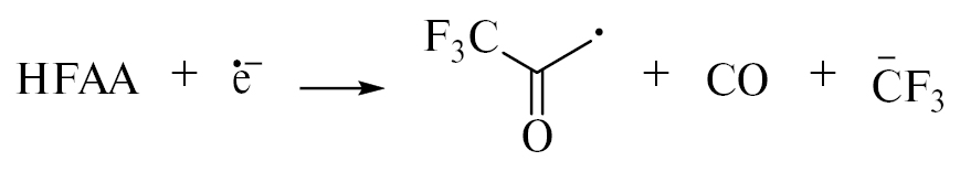 Разрыв связи С–СF3 возможен также при диссоциативном присоединении электрона к молекуле ГФАА [17, 18] :