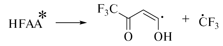 Разрыв связи С–СF3 с образованием радикала ×СF3 возможен также при распаде возбужденной молекулы ГФАА: