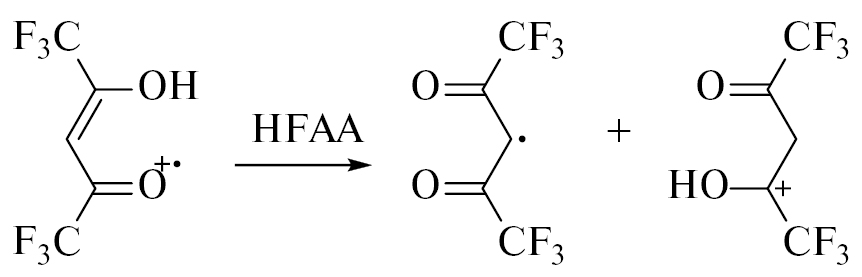 Гексафторацетилацетон (ГФАА) – удобный комплексообразователь для многих ионов металлов [1]. Получаемые металлокомплексы стабильнее и летучее [2], чем ацетилацетонаты, что привлекает к ним интерес в современных технологиях парофазного (электронно-лучевого) осаждения наноструктур на поверхностях материалов [3, 4], а также в радиохимическом извлечении лантаноидов и актиноидов из отработанного ядерного топлива [2, 5, 6]. В обоих случаях важны сведения о радиационной стойкости ГФАА.