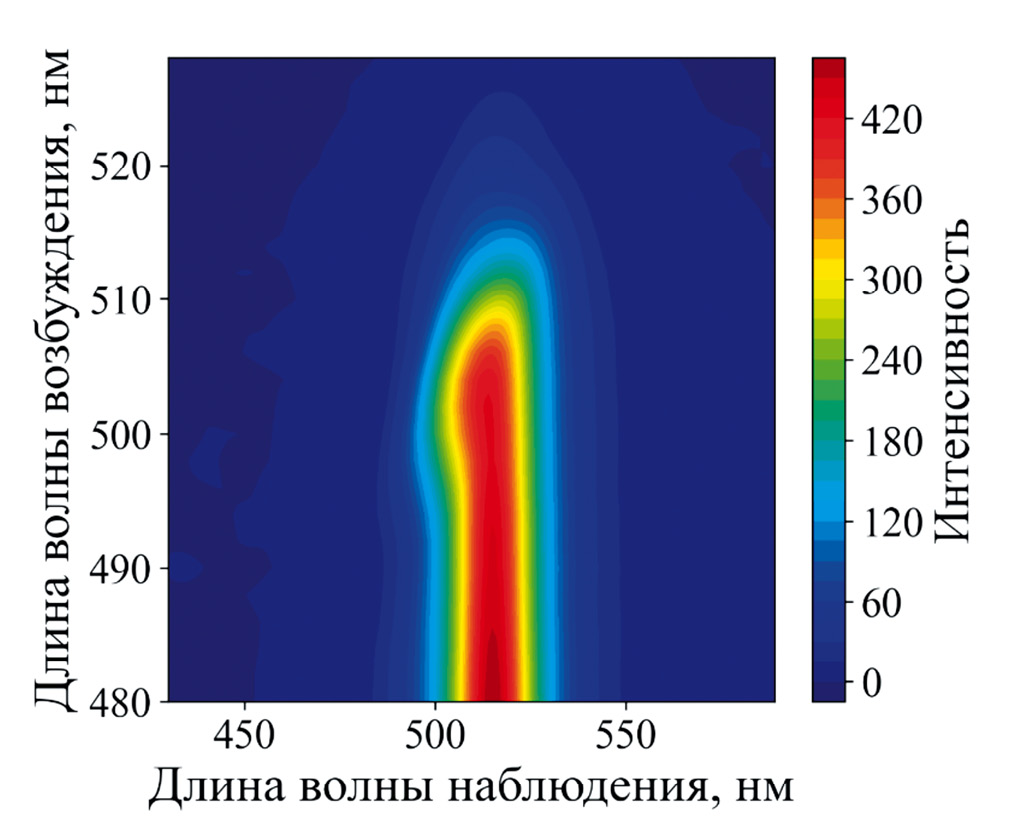 Рис. 2. Матрица “возбуждение-люминесценция” раствора ККТ CsPbBr3.