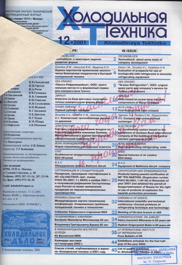 Refrigeration Technology. 2001;90(12):2-3