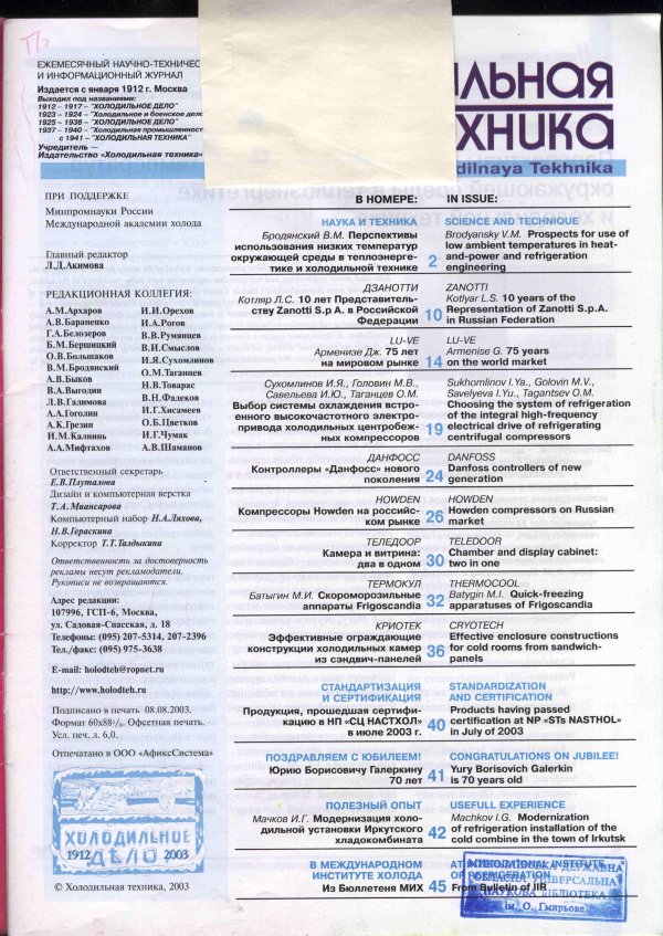 In March 2003 the Representative Office of Italian company Zanotti S.p.A. - a manufacturer of refrigeration equipment - in the Russian Federation celebrated its 10th anniversary. This date was dedicated to the May 14, 2003. Zanotti S.p.A. and Luigino Belloni with employees and managers of Russian companies, Zanotti dealers and distributors, design and service organizations ( Installation and service organizations ("Morena", "New Line", "Russian Project", "Commercial Design", "Khladonprom", "Climat Stale", "Energopromservice", "Center Cold", "Tehol", "AZNH-M", "Giproribprom", "Giproholod", "Food", "Termokul" and others. ). The Technical Director of the Representative Office L.S. Kotlyar made a review report on the company's activities and equipment. Fragments of this speech are published below.