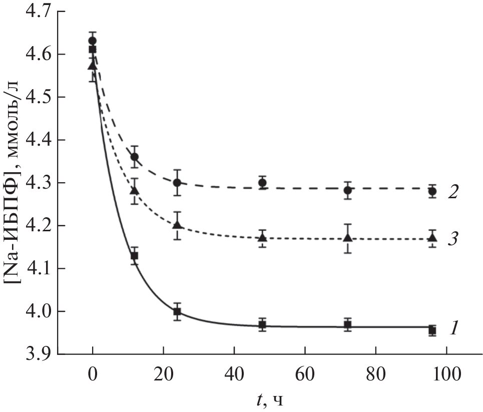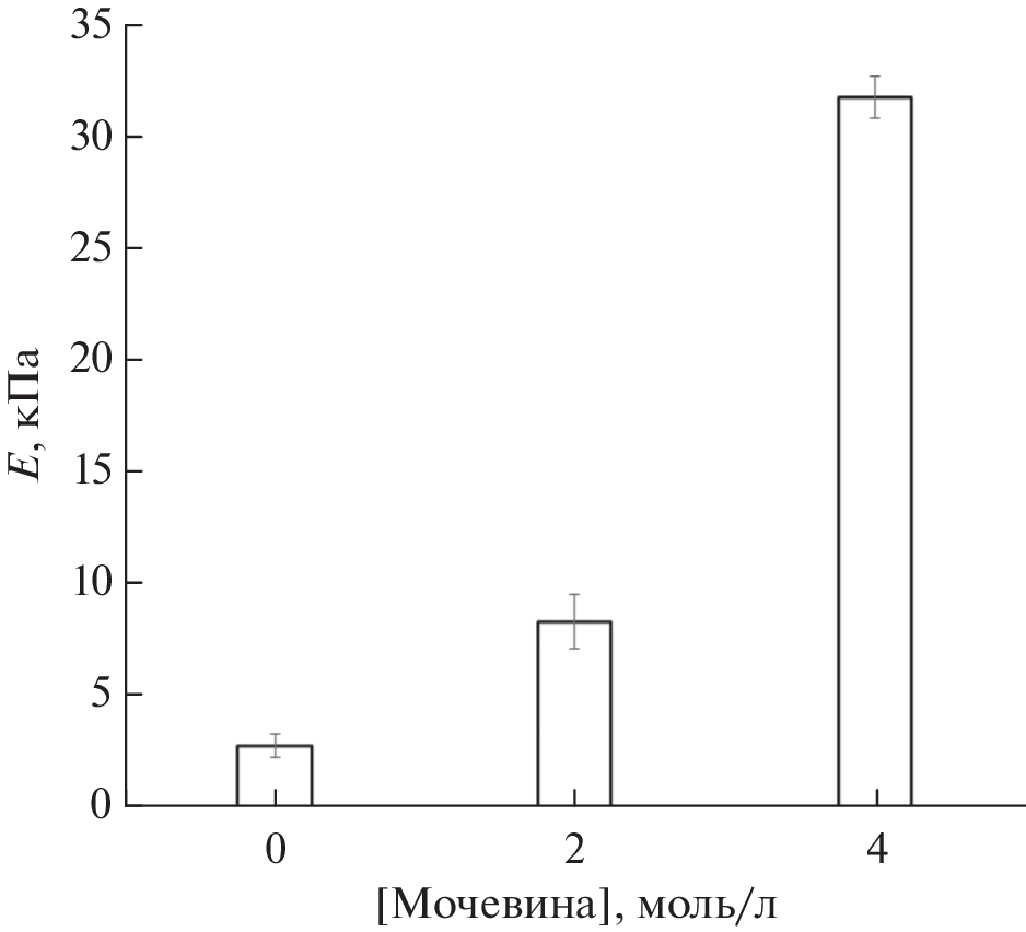 Криогенной обработкой (замораживание при –21.6°C в течение 12 ч, а затем оттаивание нагреванием до 20°C со скоростью 0.03°C/мин) раствора поливинилового спирта (ПВС; 100 г/л) в диметилсульфоксиде (ДМСО) без и с добавками проявляющей в такой среде космотропные свойства мочевины в концентрации 2 или 4 моль/л, получены “первичные” криогели ПВС. Их последующая гидратация замещением ДМСО на воду вызывала уменьшение объема и массы образцов, а также приводила к существенному росту модуля упругости получаемых “вторичных” криогелей. Абсолютная величина таких эффектов зависела как от концентрации мочевины в исходном растворе ПВС, так и от соотношения объемов гелевых образцов и водного экстрагента при их гидратации. С помощью оптической микроскопии установлено, что присутствие мочевины в исходном ДМСО-растворе полимера в концентрации, близкой к пределу ее растворимости в такой среде, индуцирует формирование крупнопористой морфологии образующейся гелевой матрицы. Поскольку высокомодульные “вторичные” криогели ПВС представляют большой интерес в качестве материалов биомедицинского назначения, в работе была оценена возможность их функционирования в качестве носителей систем доставки лекарственных веществ. Как модельное лекарственное соединение использовалась натриевая соль ибупрофена. С помощью анализа в рамках функции Вейбулла кинетики высвобождения этого вещества показано, что динамическое водородное связывание его карбоксилатных групп с гидроксильными группами ПВС приводит к замедлению высвобождения лекарства из полимерного носителя, т.е. способствует пролонгированию процесса высвобождения. При этом скорость процесса зависит от содержания мочевины в исходном растворе полимера, что, скорее всего, связано с неодинаковой микроструктурой полимерной фазы стенок макропор криогелевой матрицы.