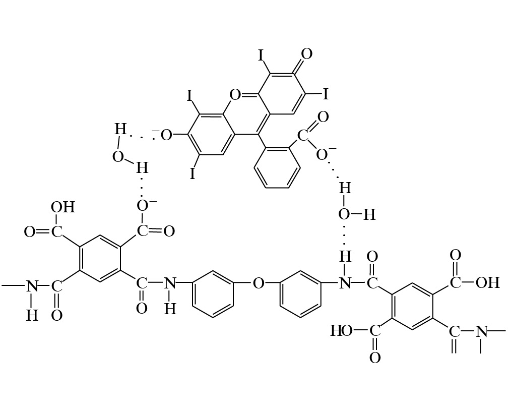 Рис. 7. Схема образования водородных связей молекул эритрозина Е127 и полиимида.