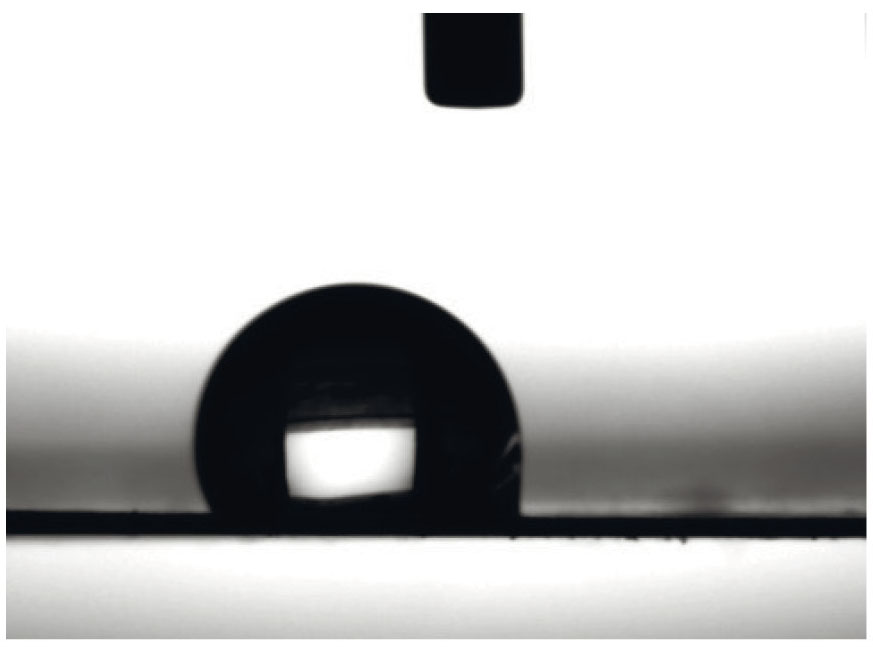 Смачиваемость поверхности образцов характеризовали значениями равновесных краевых углов, измеренными с помощью установки “Easy Drop DSA100” (KRUSS, Germany) и программного обеспечения Drop Shape Analysis V.1.90.0.14. На каждый образец наносили 5 капель объемом 3 мкл, каждая из которых обрабатывалась программой 15 раз в секунду в течение 2 сек. Для измерений использовали особо чистую деионизированную воду с удельным сопротивлением 18.2 МОм × см.