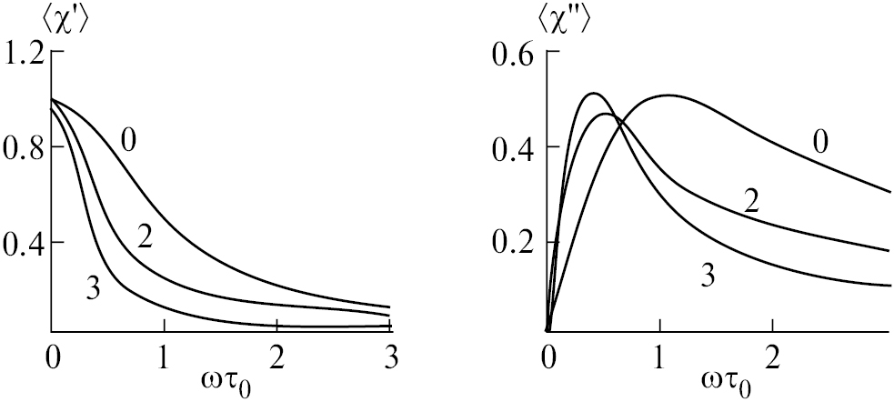 Величины и τ(z,ρ) определены в (11) и (12). Функция χ = χ(z,ρ) является редуцированной комплексной восприимчивостью пары частиц при данных z,ρ; χ′ и χ′′ – ее реальная и мнимая части. Напомним, что соотношения (11, 12) и, следовательно, (13) получены в линейном приближении по малом параметру Ланжевена h.