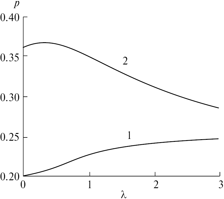 Некоторые результаты расчетов функции p(λ) показаны на рис. 5.