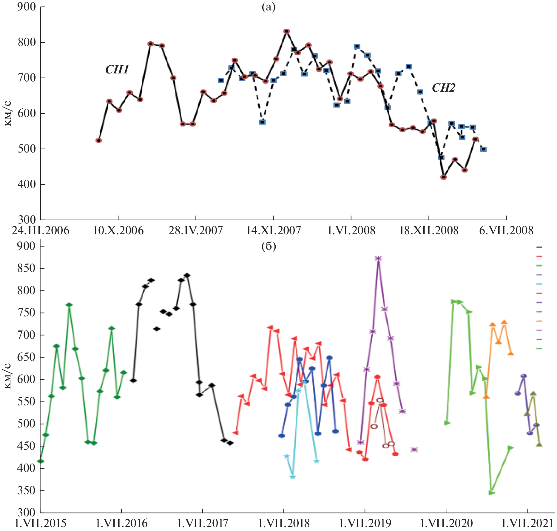 - Zhao L., Landi E., Fisk L.A. et al. The coherent relation between the solar wind proton speed and O7+/O6+ ratio and its coronal sources // AIP Conference Proceedings. 2016. V. 1720. 020007. https://doi.org/10.1063/1.4943808