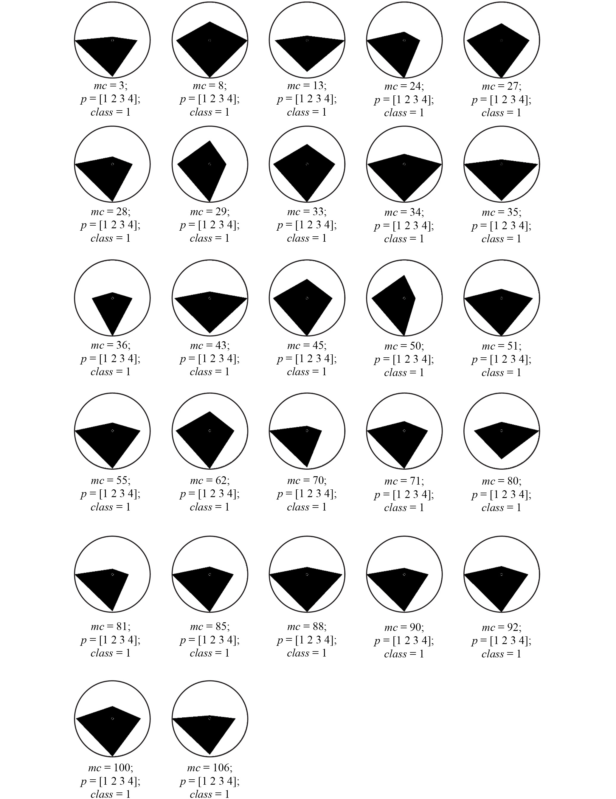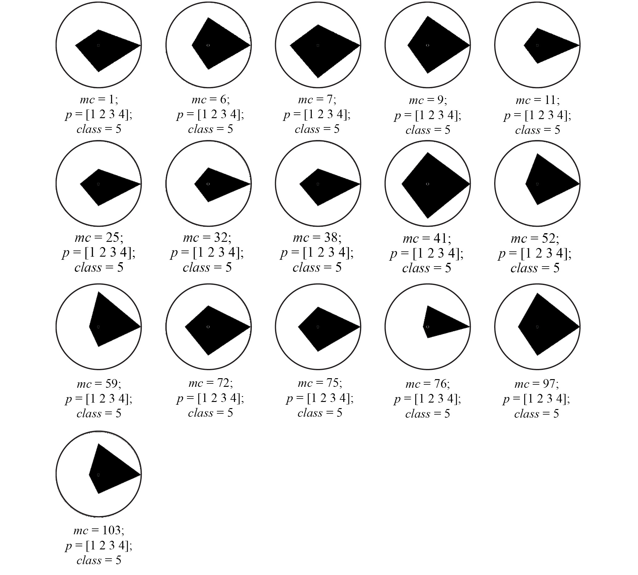 Визуальный осмотр результатов классифицирования в виде групп многоугольников (рис. 4–8) согласуется с выводами, предлагаемыми ИНС. Анализ полученных данных позволяет сформулировать следующие особенности полученных классов.