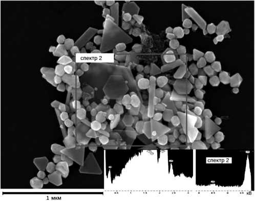 Исследование структурно-морфологических и геометрических (кристаллографических) свойств синтезированных наночастиц проводили с помощью сканирующей электронной микроскопии высокого разрешения и энерго-дисперсионного анализа.