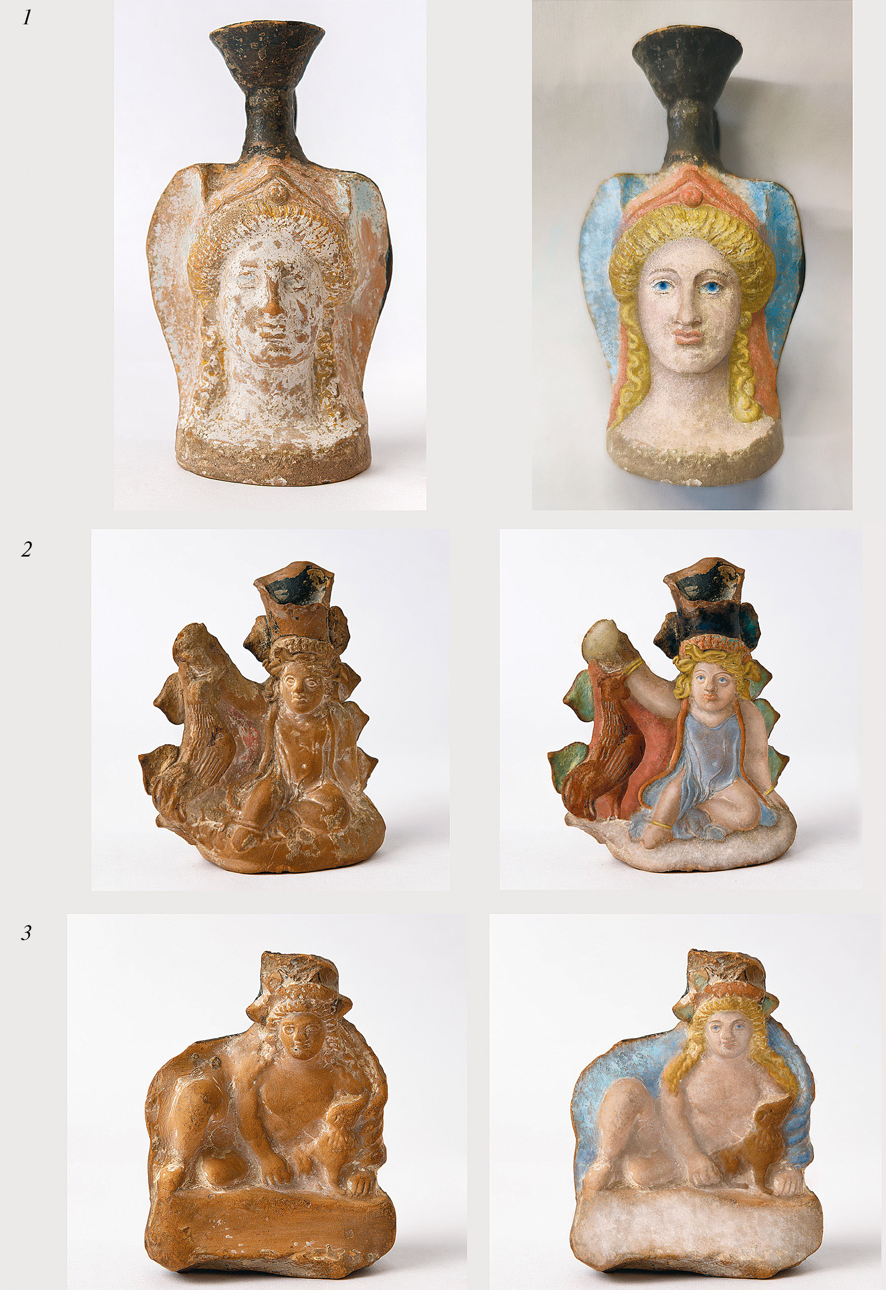 В настоящее время проводится все больше исследований, связанных с изучением полихромии античного искусства. Хорошо известно, что многие древнегреческие памятники, будь то архитектура или скульптура, керамика или терракотовые статуэтки, украшала красочная роспись с многообразием деталей и орнаментов. Пластическая объемная форма не существовала автономно, она находилась в едином взаимодействии с цветом и рисунком. Малая терракотовая пластика не была исключением – терракотовые статуэтки и фигурные сосуды покрывала деликатная полихромная роспись. Об этом свидетельствуют немногочисленные памятники, сохранившие следы своего богатого декора. Благодаря современным естественно-научным исследованиям стало возможно подробно изучить древние технологии и материалы, использовавшиеся мастерами.