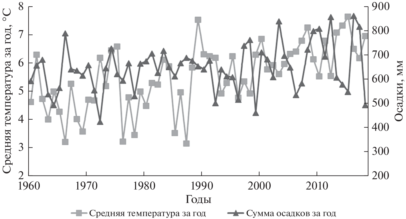 Исследовалось влияние температуры и осадков на изменение радиального прироста древесины тополя берлинского (Populus × berolinensis Dipp.) и липы мелколистной (Tilia cordata Mill.) в Санкт-Петербурге. Керны отобраны со старых деревьев в парке Лесотехнического университета, в Палевском сквере, в г. Пушкине (тополь) и в Московском парке Победы (липа). Для исключения влияния фактора возраста образца на изменение ширины его годичных колец были использованы общепринятые методы детрендинга, расчеты проводились в программном обеспечении Arstan. Колебания осадков и температуры зимнего периода значимо не влияют на рост тополя и липы в Санкт-Петербурге. Летние осадки оказывают положительное, но не определяющее воздействие, в некоторых случаях радиальный прирост древесины увеличивается с ростом количества осадков. Температура не оказывает значимого воздействия на стандартизированные (очищенные от влияния возраста) показатели прироста. Нестандартизированные средние значения прироста при увеличении температуры в июле–сентябре достоверно снижаются. Воздействие температуры и осадков, по-видимому, проявляется опосредованно, усугубляя или сглаживая воздействие других факторов, в особенности фактора загрязнения воздуха. Воздействие загрязняющих веществ усиливается при повышении температуры в конце вегетационного сезона, т.к. происходит их накопление на поверхности листьев. Осадки смывают загрязняющие вещества, снижая интенсивность влияния загрязнения. Снижение прироста во второй половине 1990-х гг. у тополя при отсутствии такового у липы объясняется последствиями продолжительной вспышки массового размножения тополёвой моли – пестрянки (Phyllonorycter populifoliella) в 1991–1999 гг. Высказанные предположения требуют дополнительных исследований, в частности определения уровня загрязнения листьев в течение вегетационного сезона и учета воздействия других факторов.