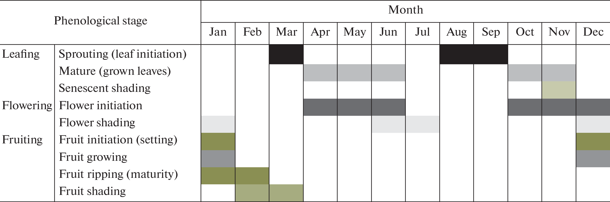 - Singh K.P., Kushwaha C.P. Diversity of flowering and fruiting phenology of trees in a tropical deciduous forest in India // Annals of Botany. 2006. V. 97. P. 265–276.