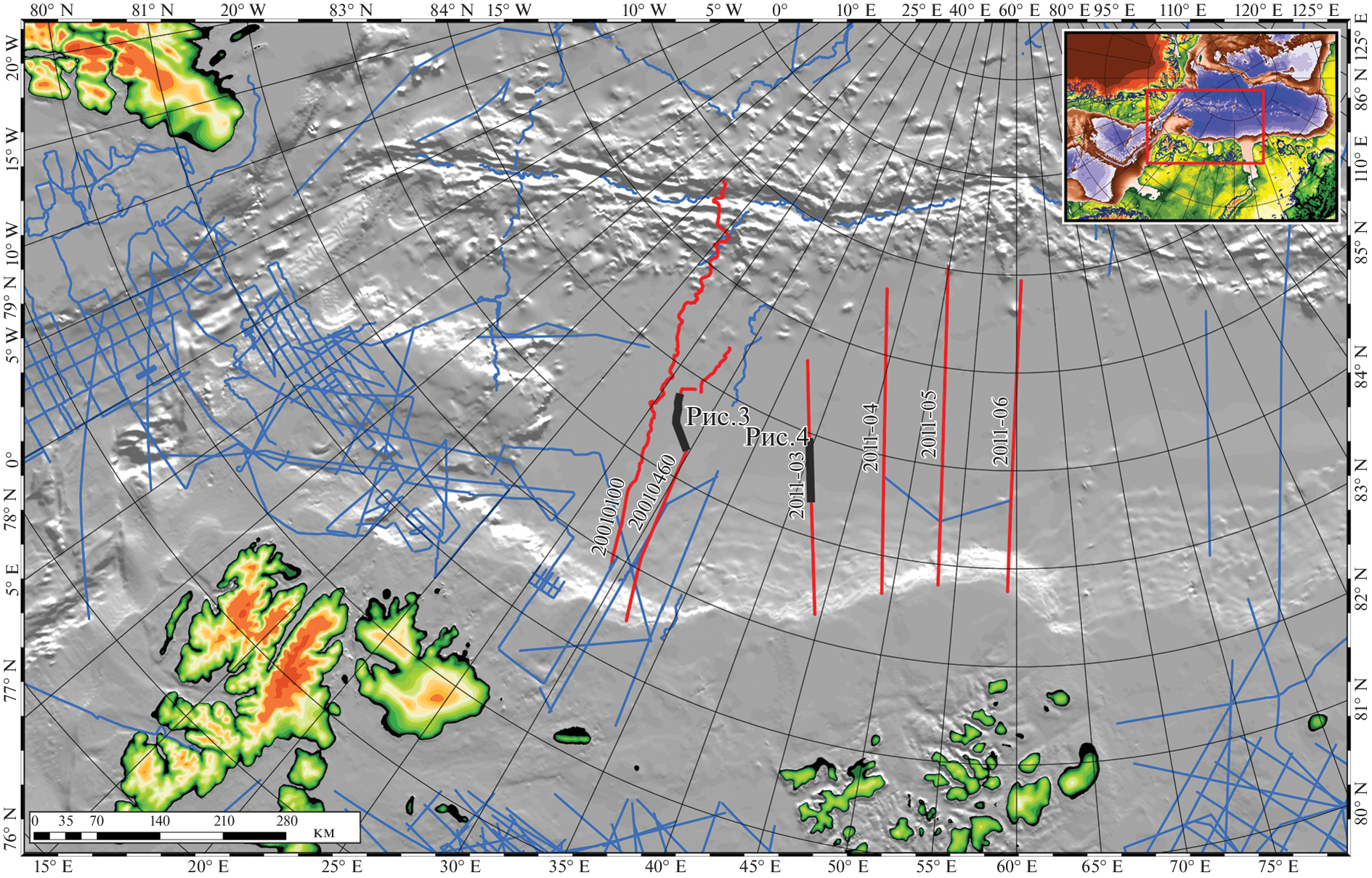 - Ritzmann O., Jokat W., Czuba W. et al. A deep seismic transect from Hovg°ard Ridge to northwestern Svalbard across the continental-ocean transition: A sheared margin study // Geophys. J. Int. 2004. V. 157. P. 683–702.