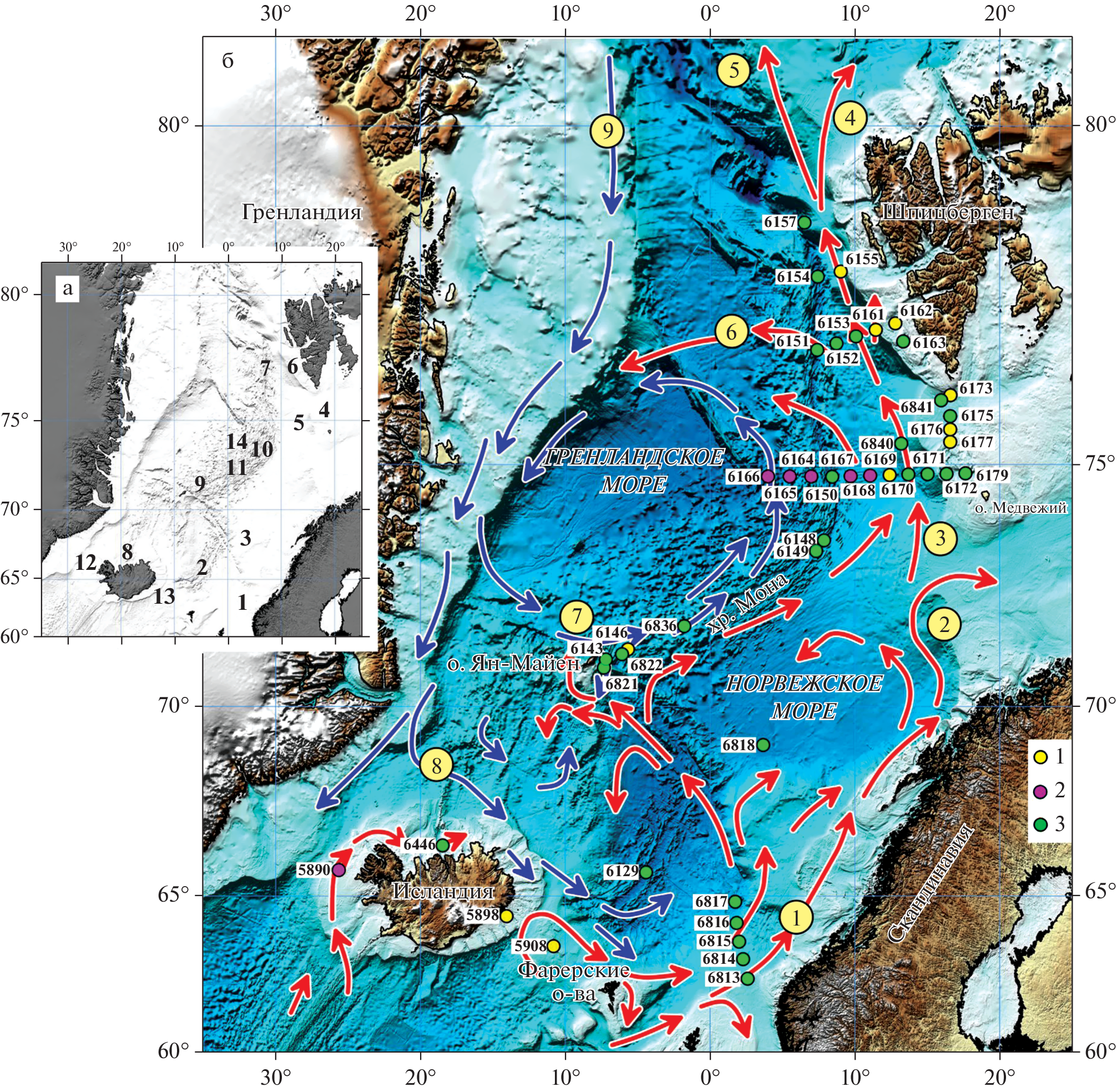 - Rossby T., Ozhigin V., Ivshin V., Bacon S. An isopycnal view of the Nordic Seas hydrography with focus on properties of the Lofoten Basin // Deep-Sea Res. I. 2009. V. 56. P. 1955–1971.