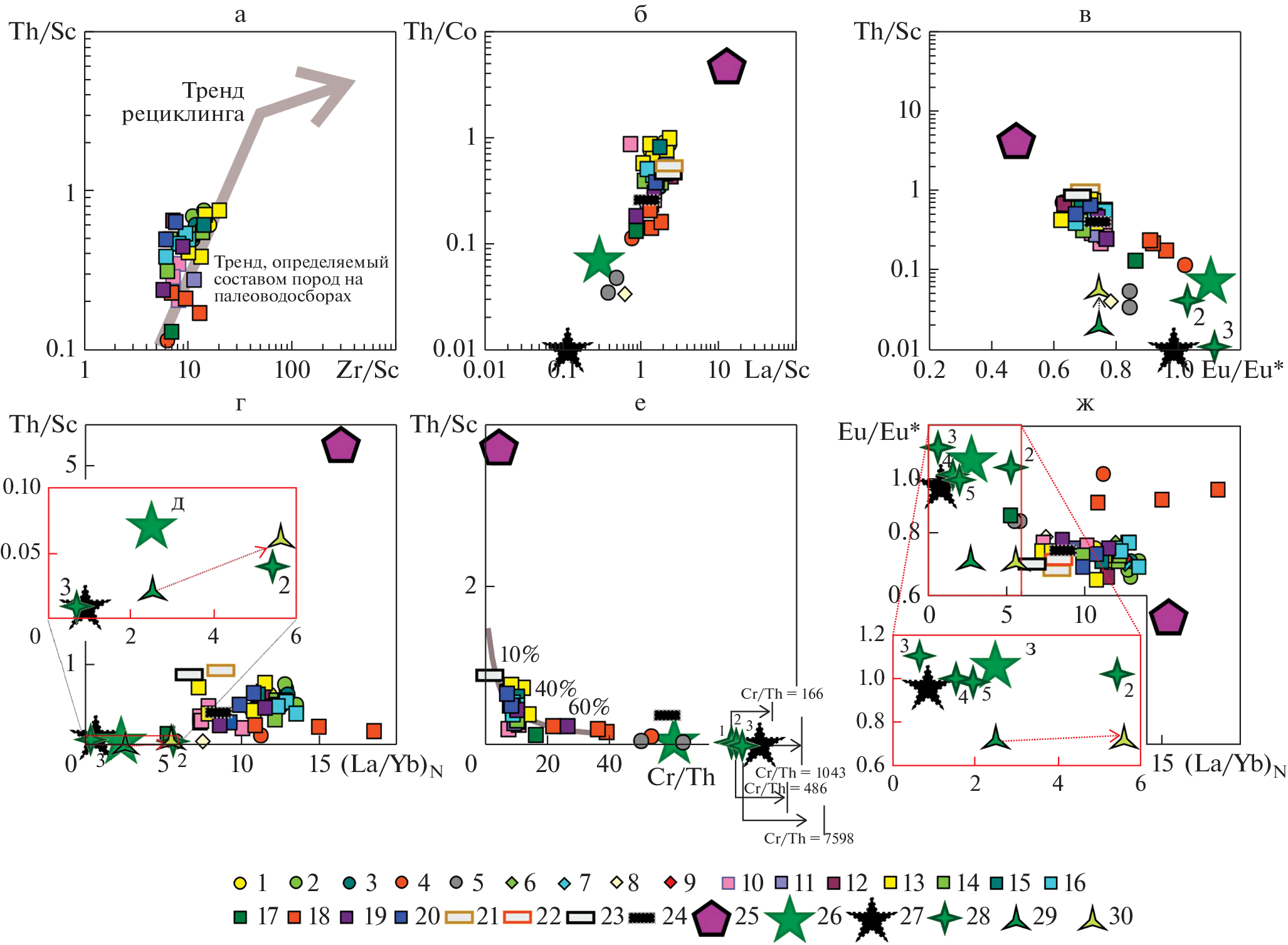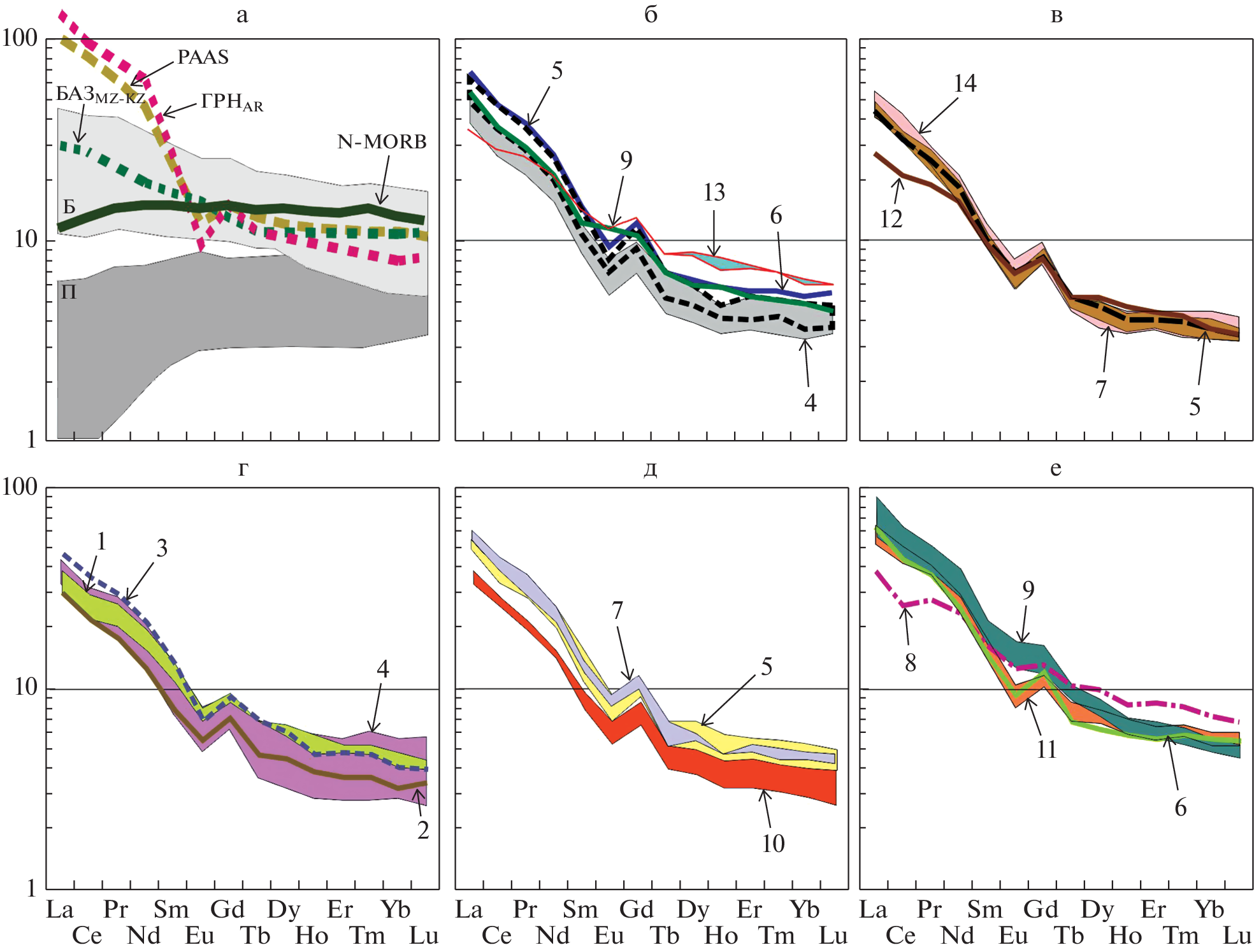 - Girty G.H., Hanson A.D., Knaack C., Johnson D. Provenance determined by REE, Th, Sc analyses of metasedimentary rocks, Boyden Cave Roof Pendant, central Sierra Nevada, California // J. Sed. Res. 1994. V. B64. P. 68–73.