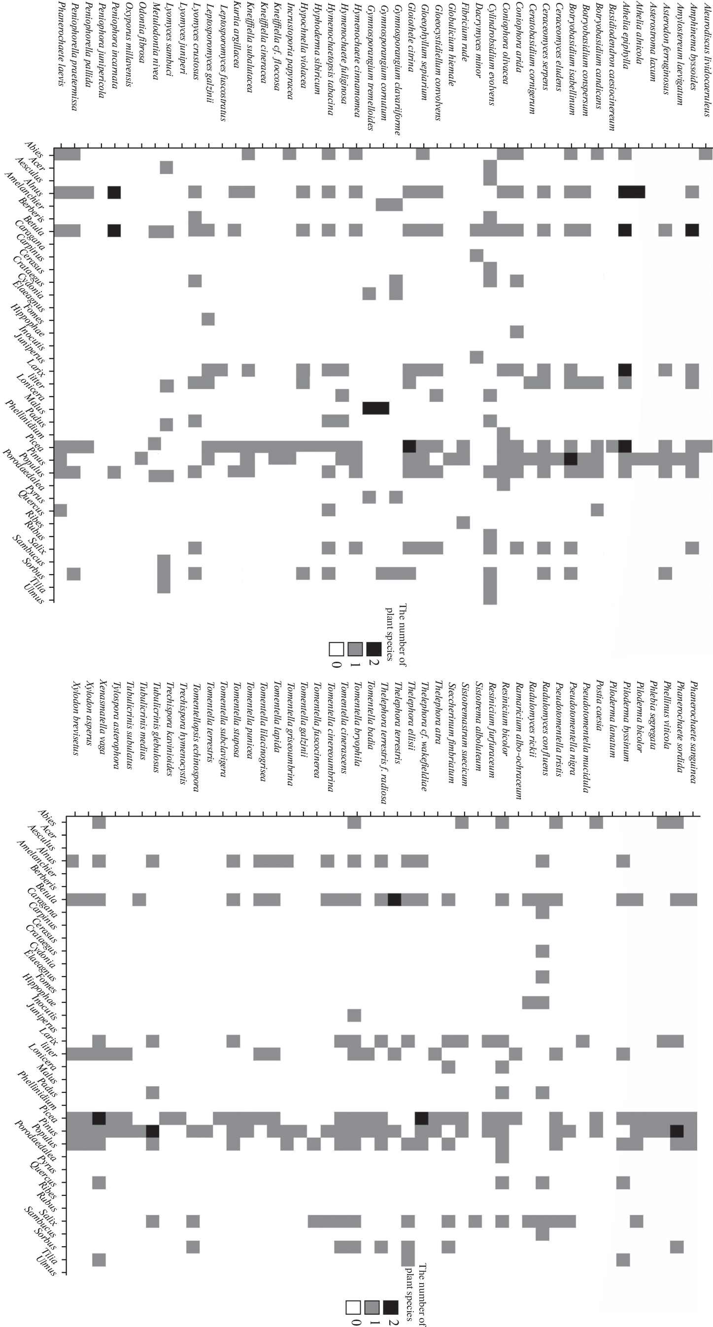 Работа посвящена изучению экологии и биоразнообразия базидиомицетов, ассоциированных с можжевельником обыкновенным (Juniperus communis) в пределах подтаежной зоны Республики Беларусь, а также ряда таежных регионов европейской части России, а именно Ленинградской обл., Республики Карелия, Республики Коми, Архангельской обл., Мурманской обл. Таежная зона представляет эколого-ценотический оптимум можжевельника обыкновенного и здесь предполагается выявление наиболее широкого спектра его грибных консортов. Всего в ассоциации с J. communis в бореальных районах Республики Беларусь и европейской части России зарегистрировано 96 видов деревообитающих базидиомицетов, ассоциированных как с мертвой, так и с живой древесиной. Выявленные виды относятся к классам Pucciniomycetes (Pucciniales, три вида), Dacrymycetes (Dacrymycetales, один вид) и Agaricomycetes (Agaricales, Atheliales, Auriculariales, Boletales, Cantharellales, Gloeophyllales, Gomphales, Hymenochaetales, Polyporales, Russulales, Thelephorales, Trechisporales, 92 вида). Представлен аннотированный список, включающий информацию о субстратном спектре каждого выявленного на можжевельнике вида. Экологические и географические предпочтения базидиомицетов и сила их связи с можжевельником проанализированы методами тепловой карты, кластеризации и Sankey-диаграмм. Рассмотрены различные типы гнили, вызываемые базидиомицетами, ассоциированными с можжевельником. Проанализирована картина глобального распространения рассмотренных видов. Показано, что биота базидиомицетов, ассоциированных с можжевельником в таежных лесах Восточной Европы, представляет собой гетерогенное и гетерохронное образование, в котором можно отчетливо выделить флорогенетически древнее ядро специализированных на можжевельнике видов, проявляющих в той или иной мере биотрофные свойства, а также несколько комплексов (свит), связанных с сосной и сосновым детритом, елово-сосновыми таежными мозаиками и бореонеморальными лесными мозаиками, характерными для Северного полушария.