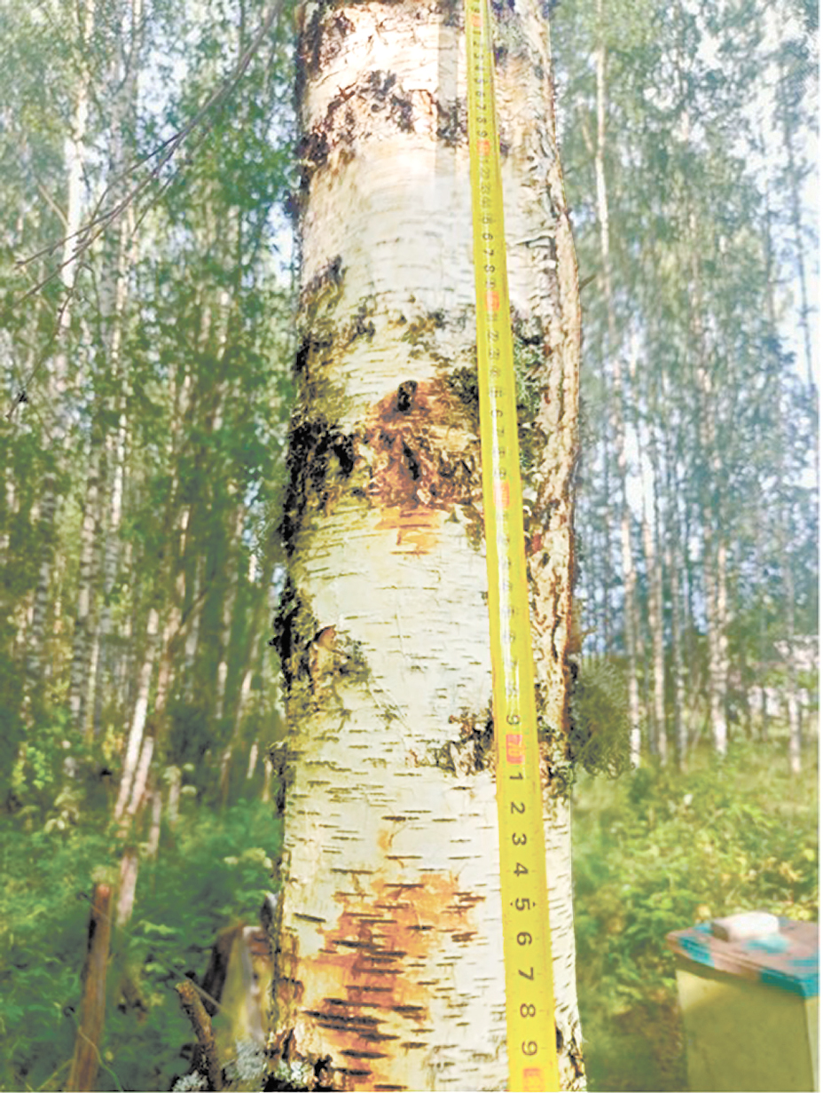 В 2023 г. живые и инокулированные березы были подвергнуты перечету. Для сортировки использовали два признака: наличие вздутия ствола и видимые наросты. Березы с вздутием ствола (рис. 1) или видимыми наростами (рис. 2) рассматривали в качестве успешно инокулированных.