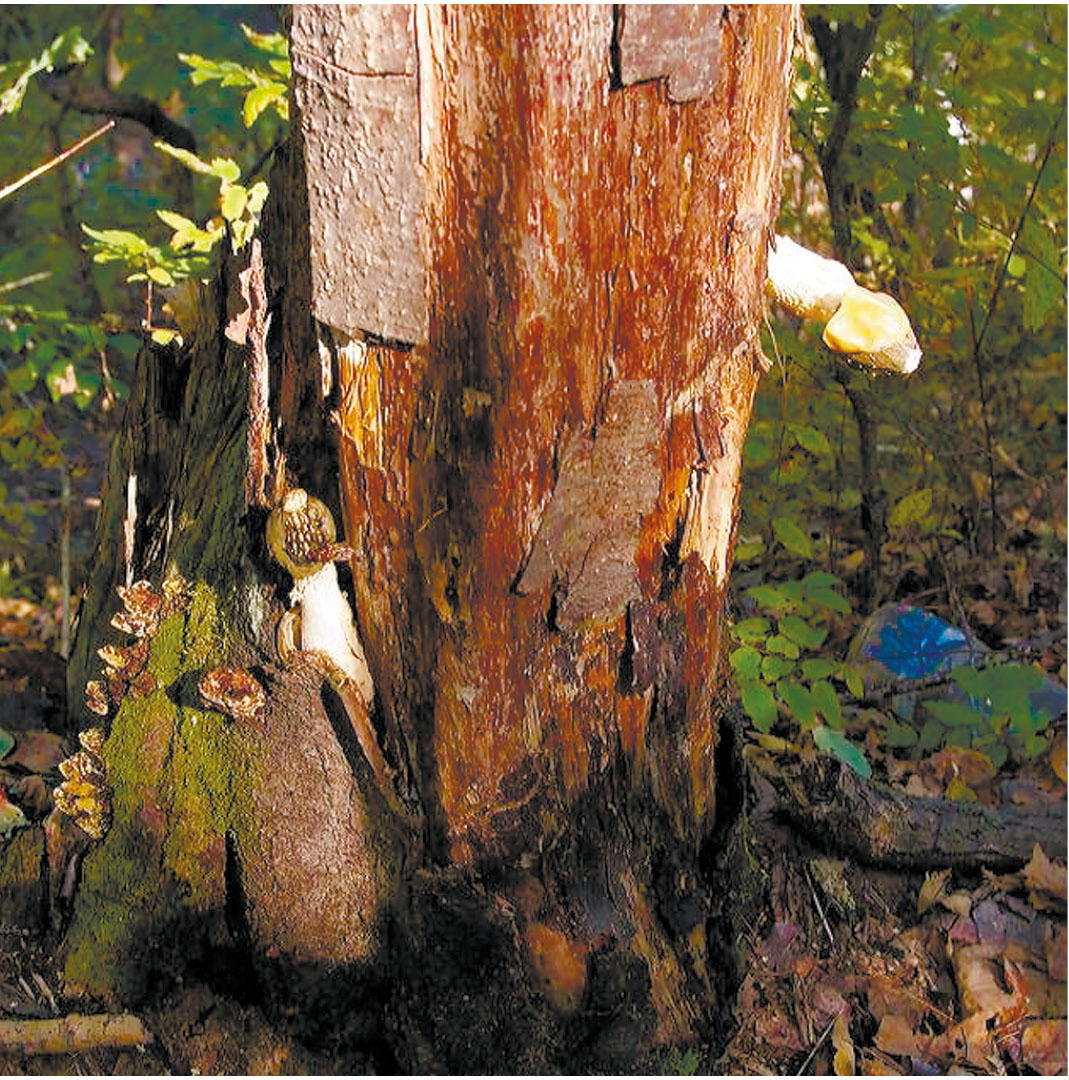 Рис. 2. Плодоношение Phallus sibiricus на высоком пне, Хабаровский край (фото Е. А. Ерофеевой).